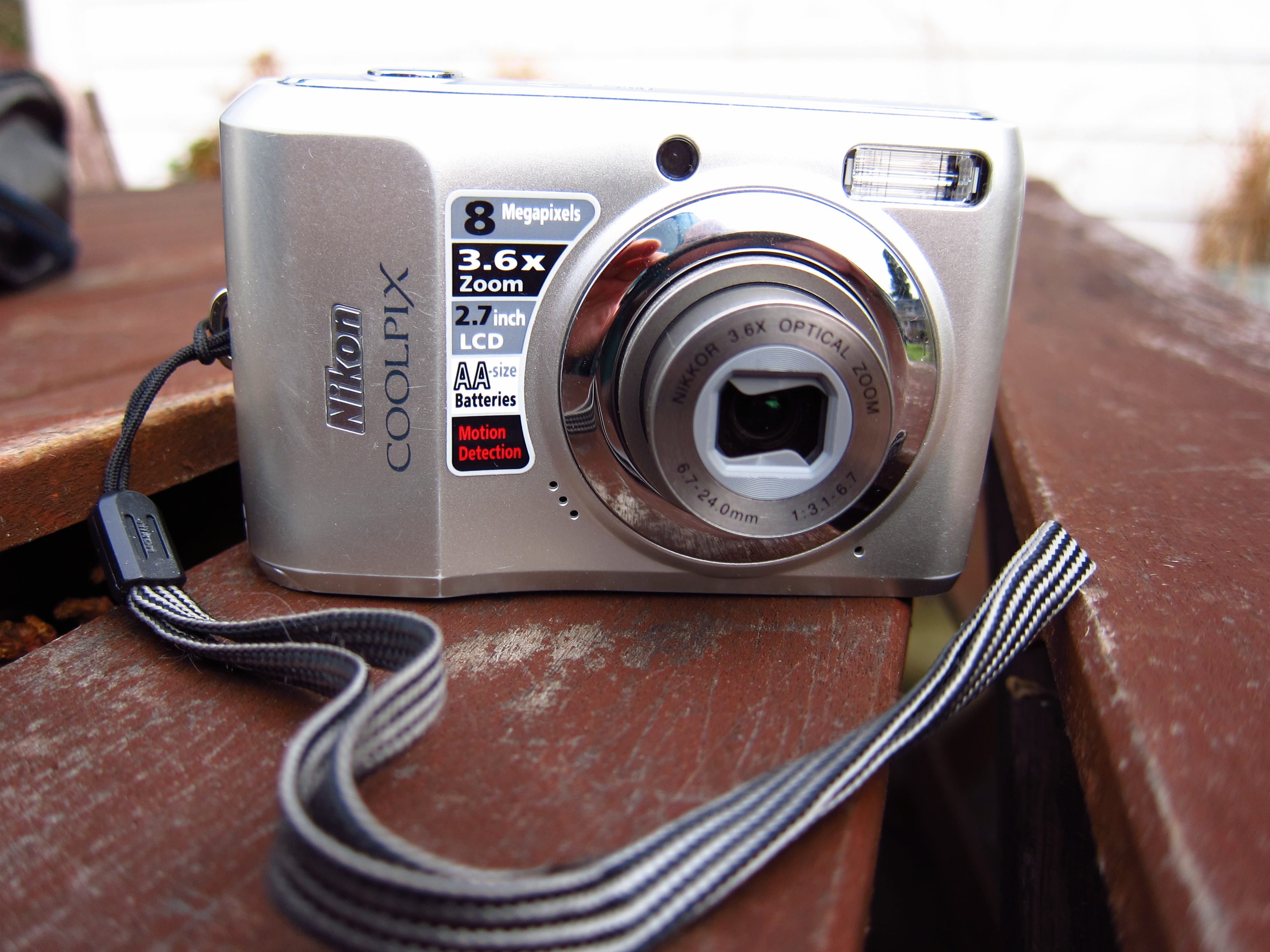 This camera was a good upgrade, with more than double the megapixels of the SD110, and an upgrade on the sensor and processor. I also purchased another camera, a backup that used regular AA batteries. The idea was to make sure, if I’m on a long ride and the Canon had a problem (you know, the SD110 died), or Canon’s rechargeable battery needed a charge in the middle of nowhere, a camera that used regular batteries would come handy. Here is the very inexpensive 8 megapixels Nikon Coolpix I purchased.