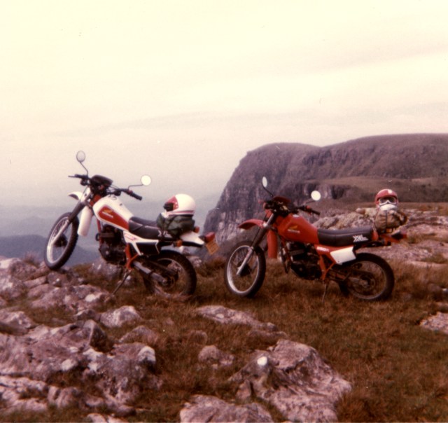 My Instamatic was a hand-me-down, from my cousin Ana Luisa. It was a popular camera in the 70’s. I probably got it in the late 70’s or early 80’s. Below is a photo I took in 1984, using the Instamatic, on one of my first adventure rides. My bike was the red XL250R. The white one belonged to my friend João Müller.