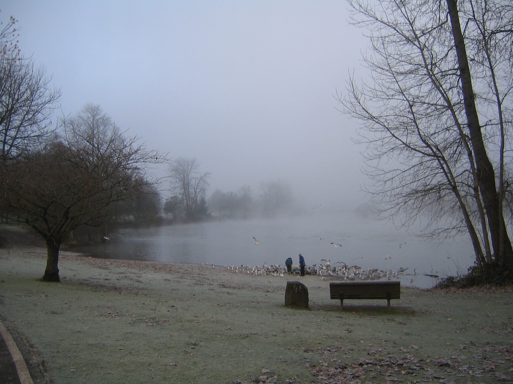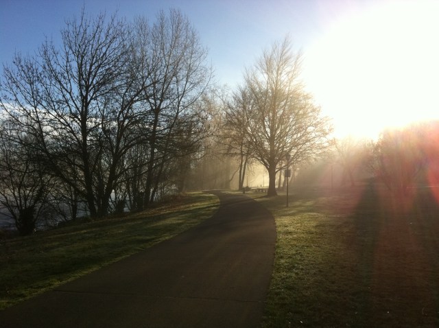 Every morning I start going down my street towards the river. It is just a couple of blocks. The road ends at the river.