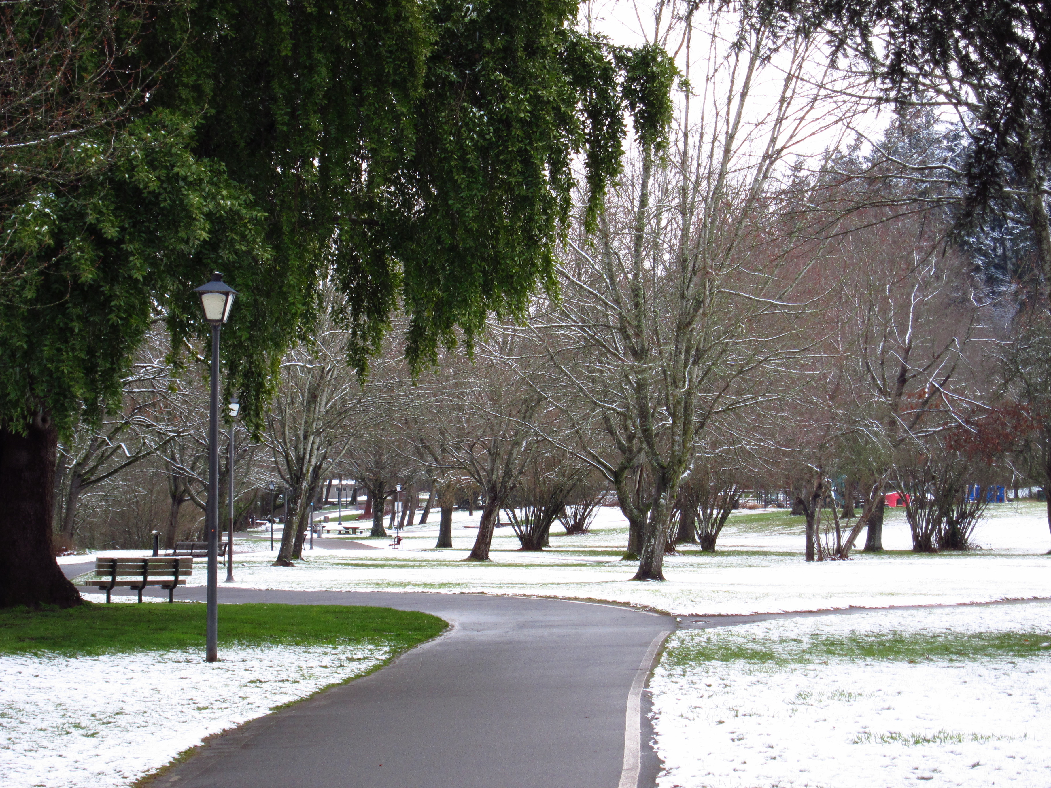 In the winter, you get to see snow every now and then (not a common thing here in the Willamette valley but it happens).