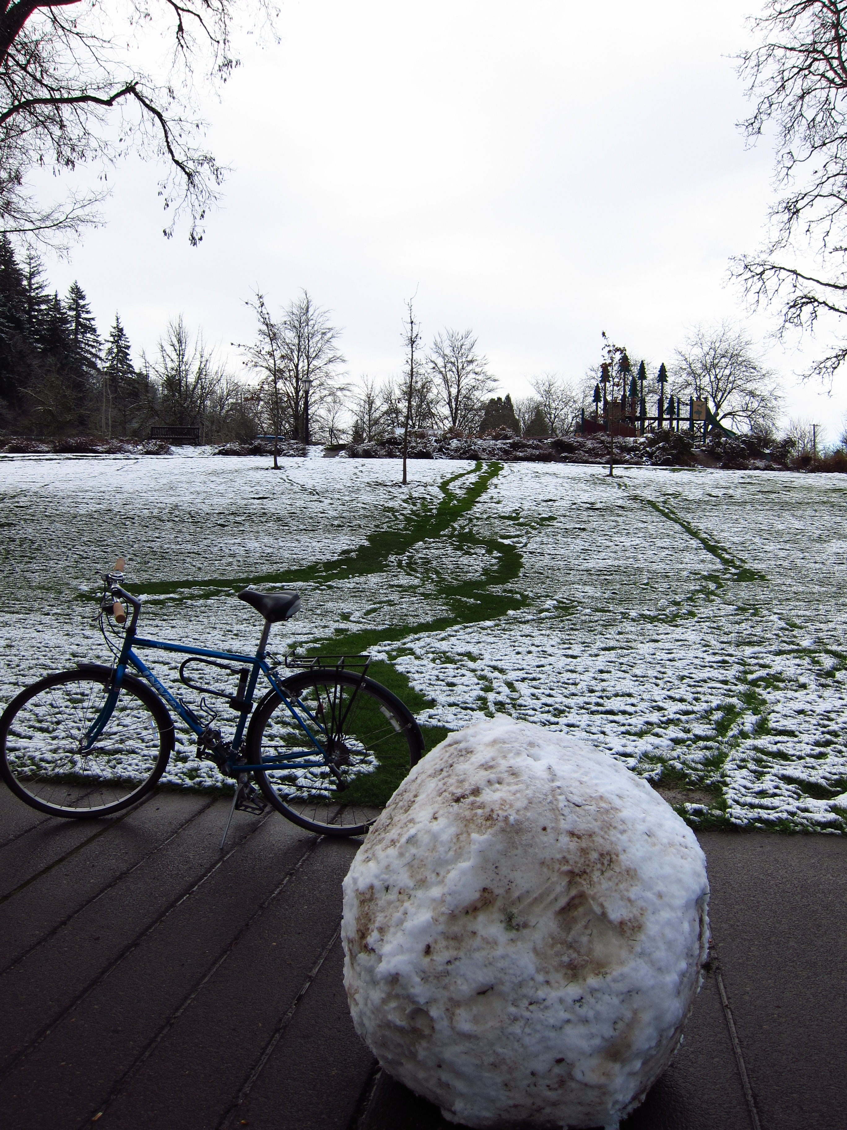 One of the snowballs was rolled into the path. Check the size of this thing.