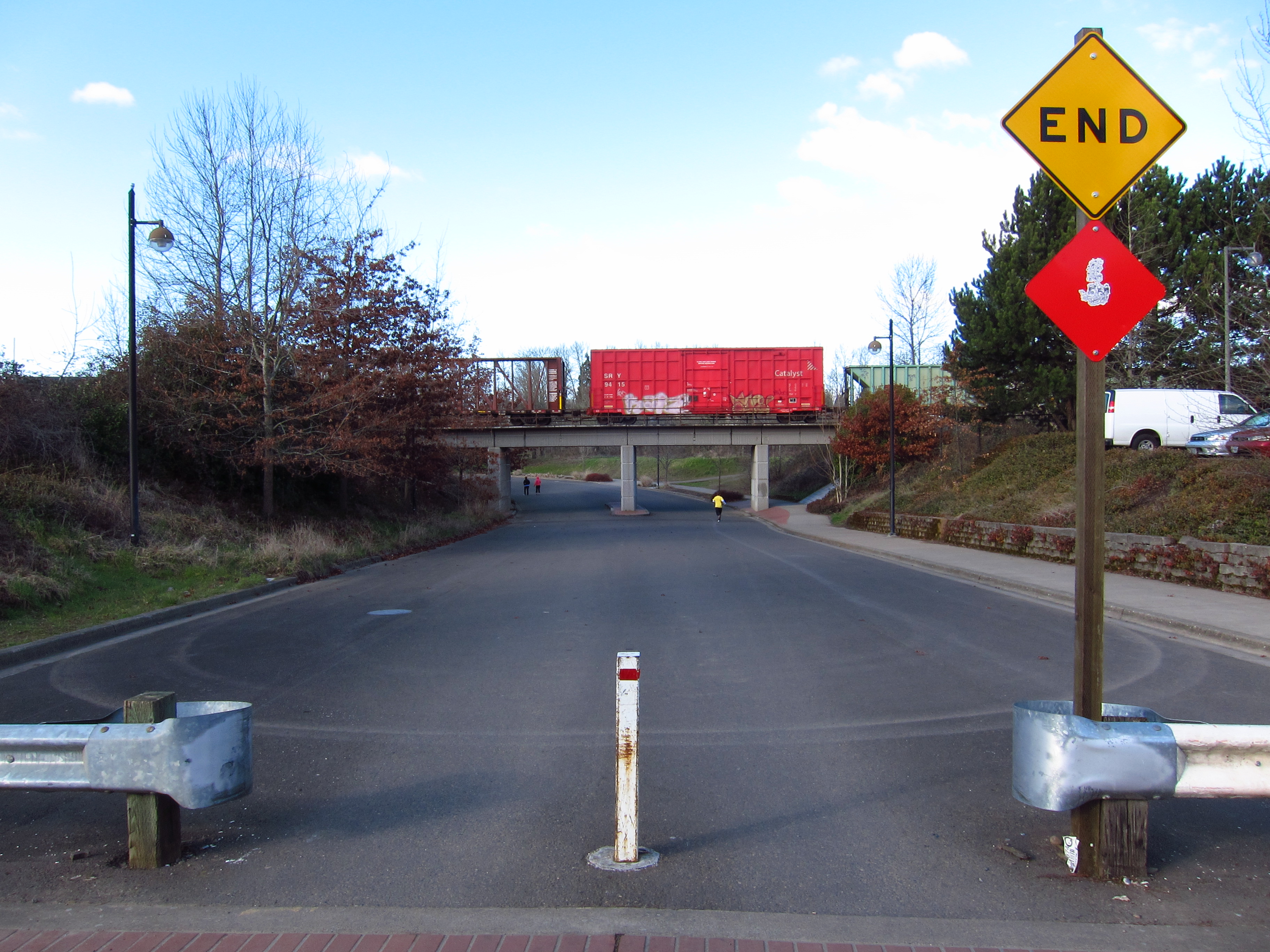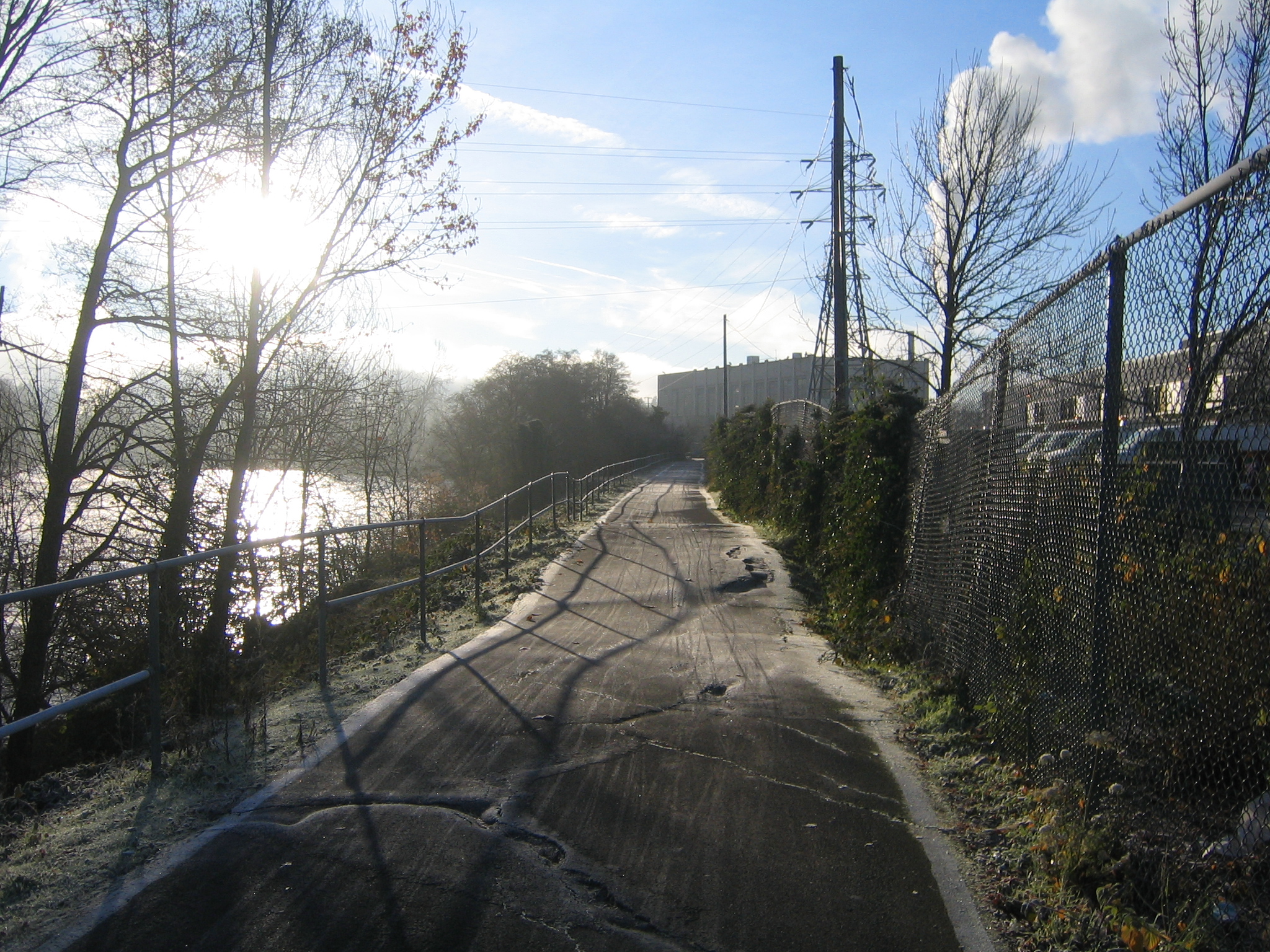 This commute is a nice 3 mile workout for me. Just enough to get me ready and relaxed for work. On the way back, I take the North Bank path. It starts by going under the train tracks.