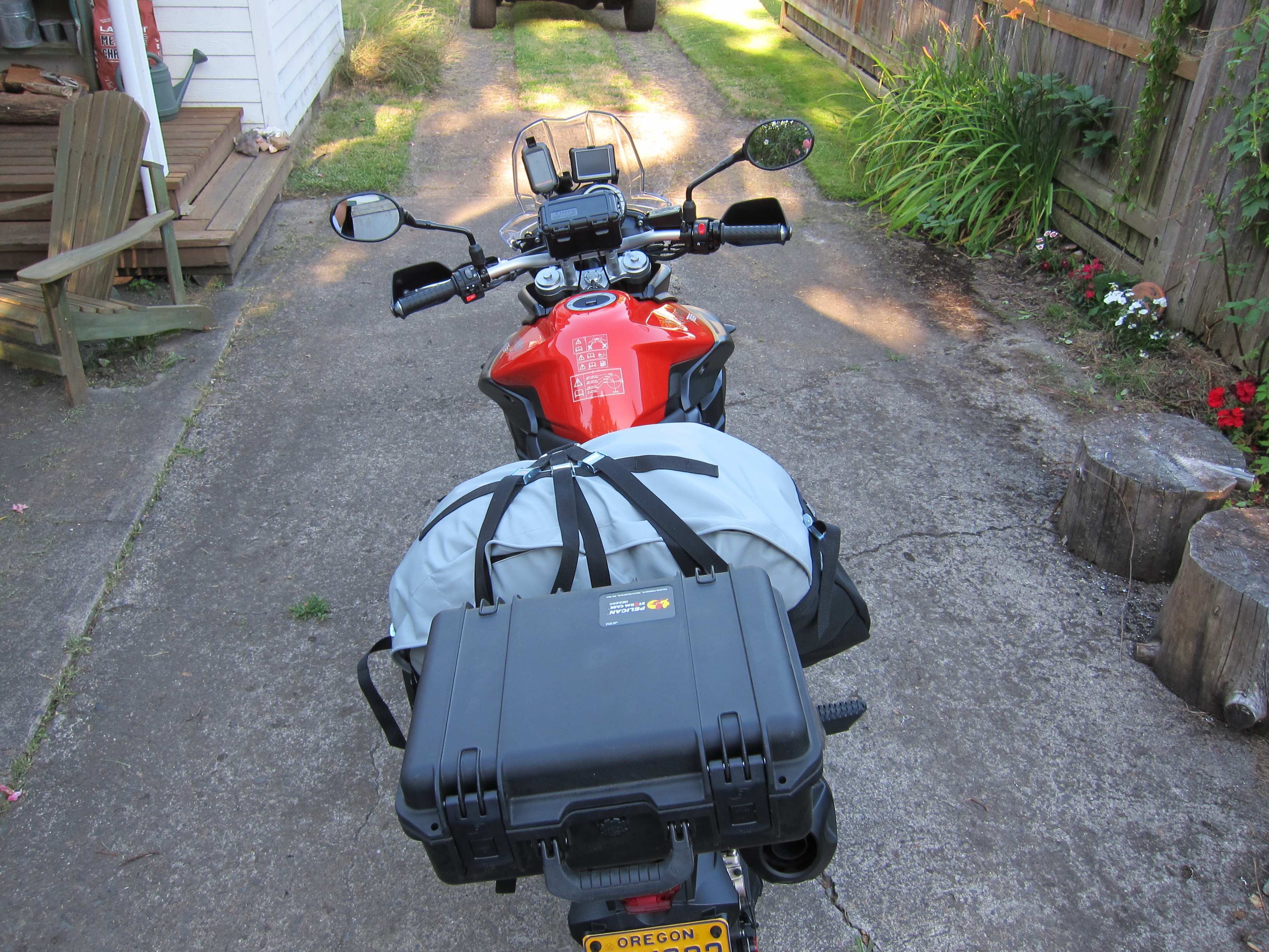 In preparation for the trip I also upgraded the handlebar mounted camera case with an Otter box and purchased the Giant Loop Great Basin bag.