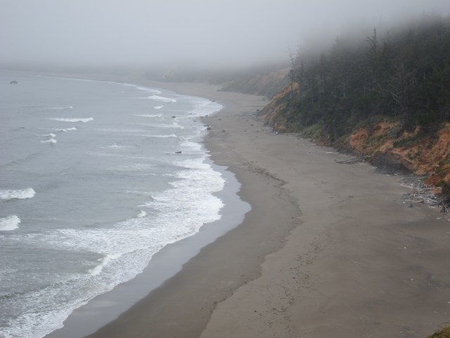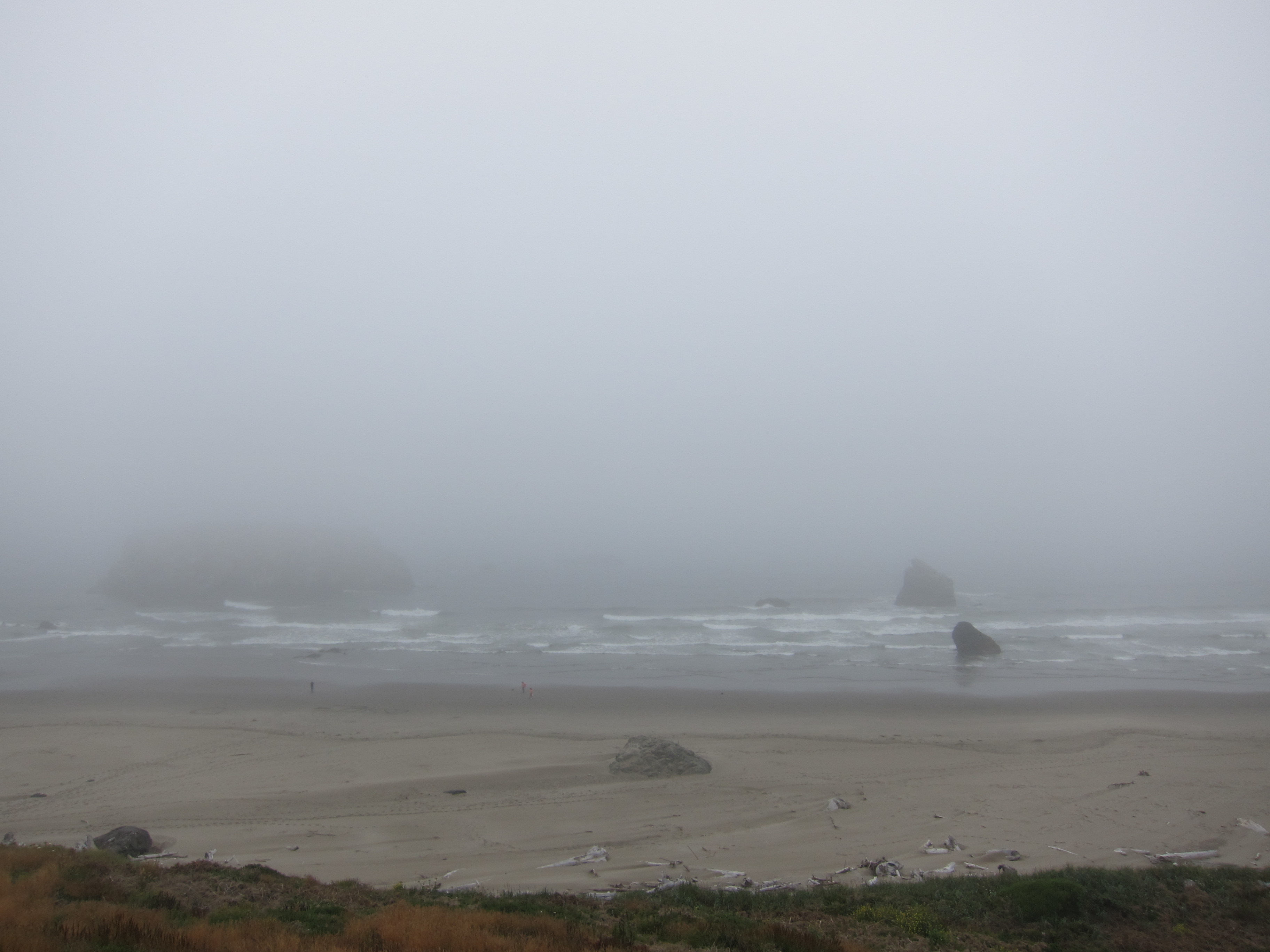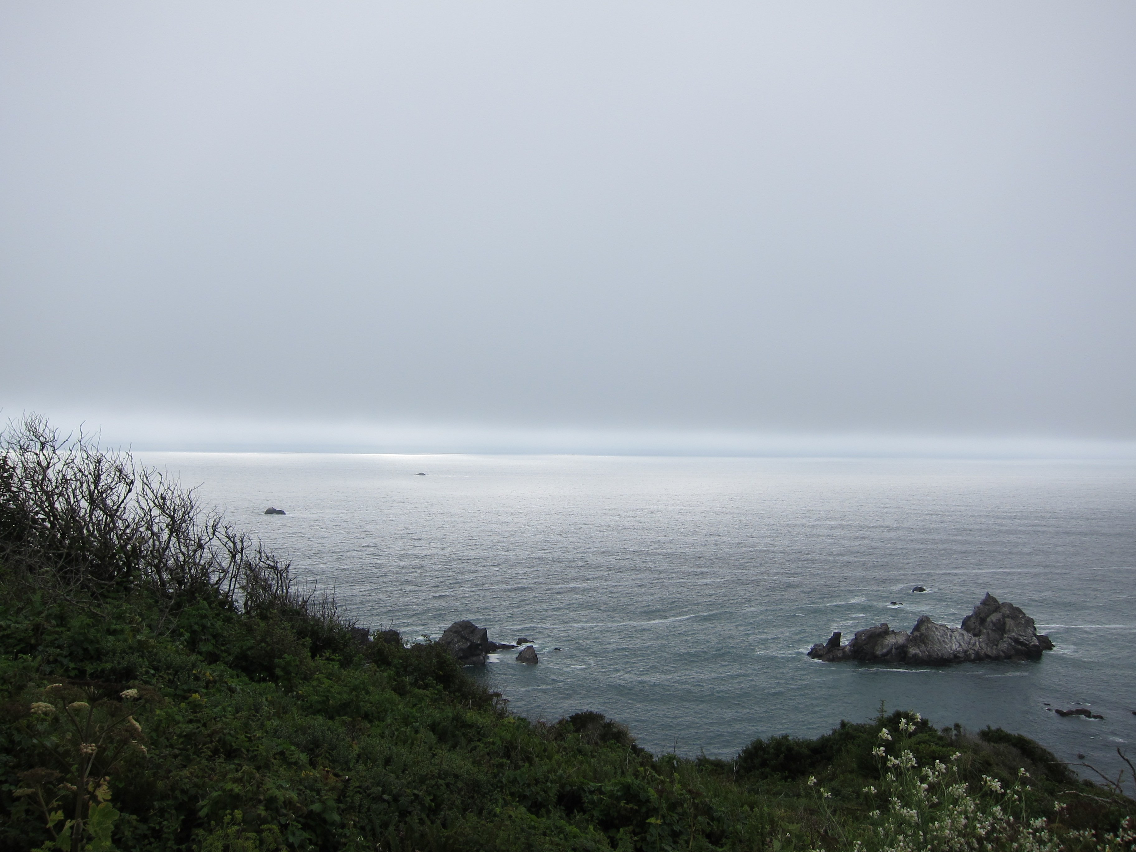 On the way back to the campground, stopped to take a look at the Pacific. Fog and clouds clearing on the horizon.