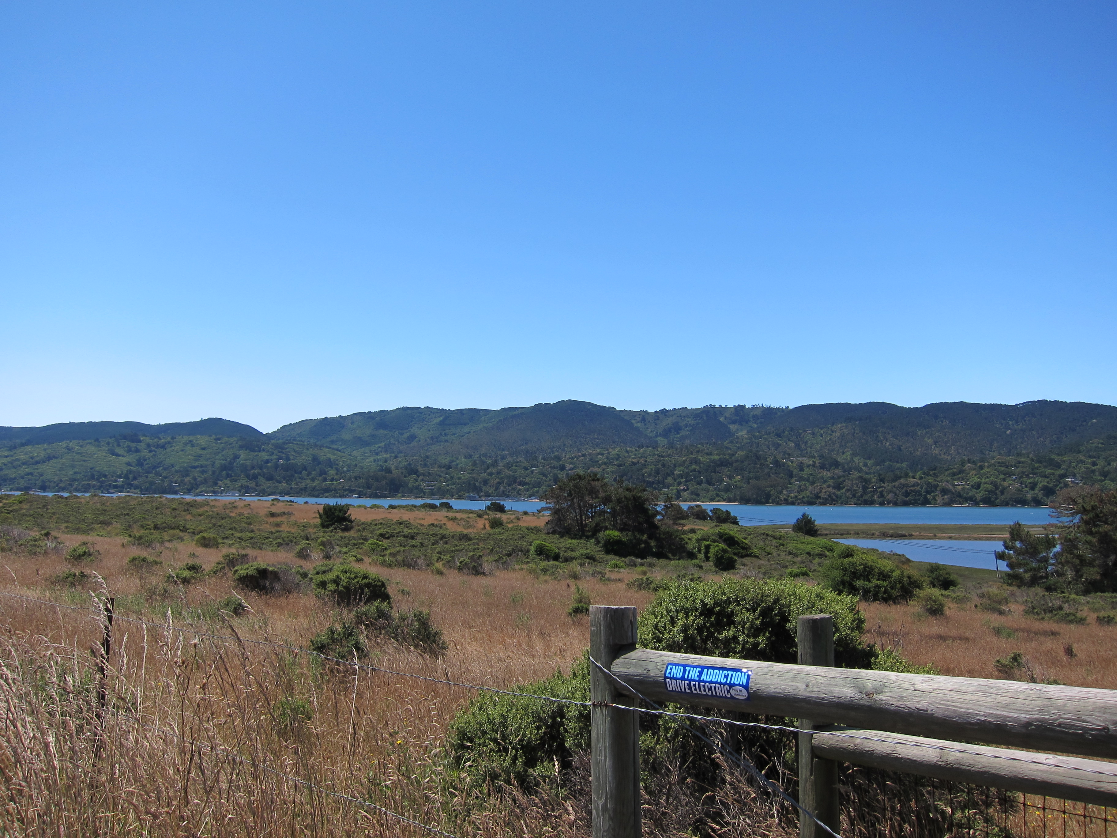 Now I was on the mainland side of Tamales Bay. What was that bumper sticker on the fence?