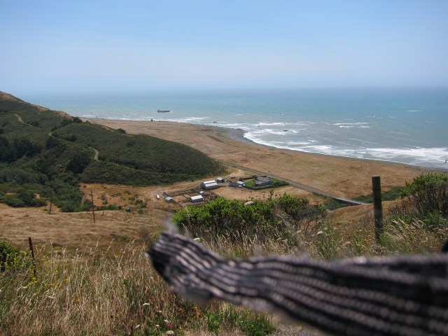 And here is the view, looking back from where I was coming from. Check the camera strap flying on the high winds. There is a cattle ranch right there, at the beach. Only if the cows had the ability to enjoy the views…