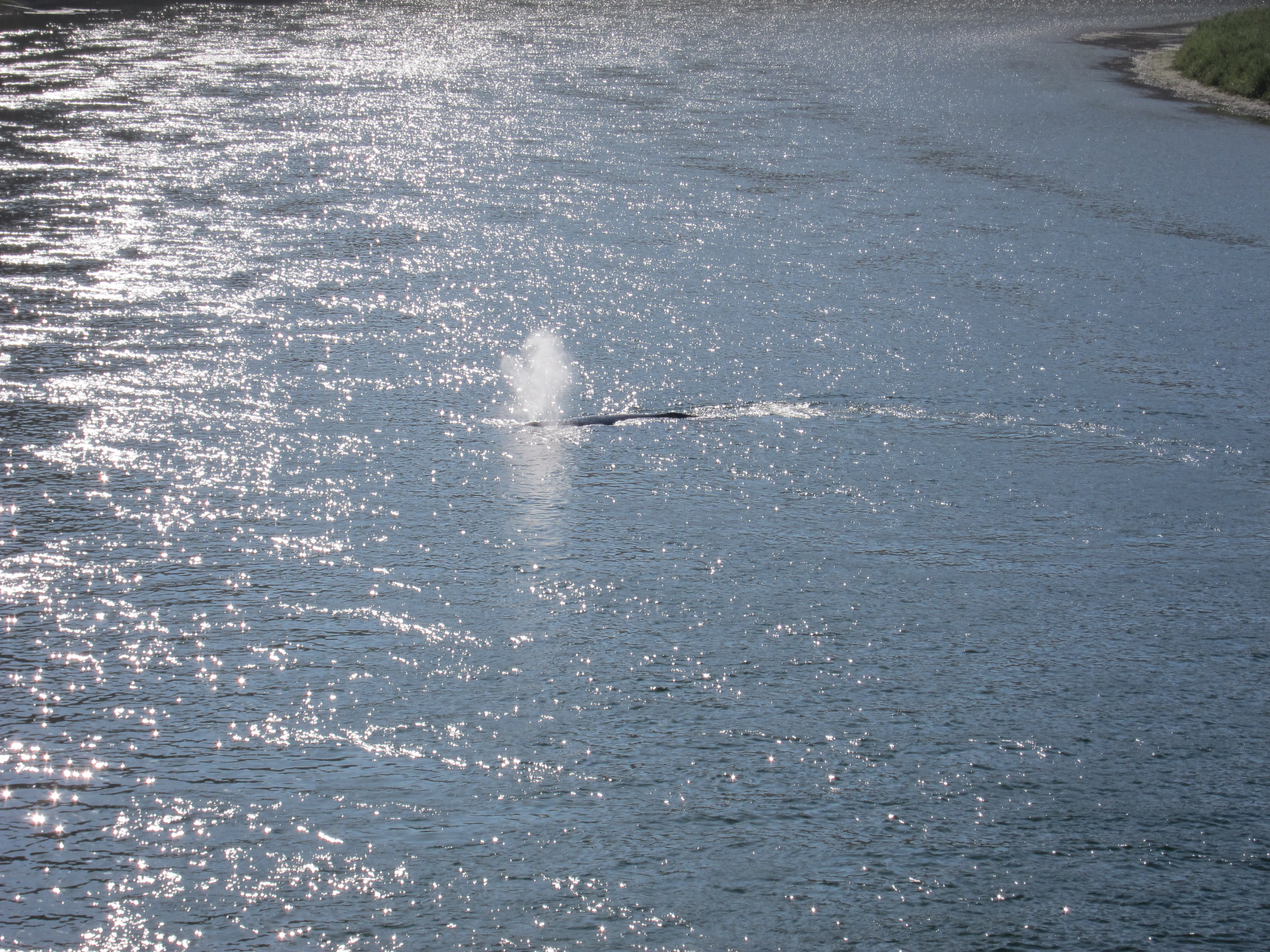 The story goes that she came in there with her calf. The calf was already a “teenager” and eventually left back towards the ocean. The mother stayed behind and no one knows why. People tried to make her go back by using boats, making noise. Nothing had convinced her by the time I went through. She was there for five weeks and was still healthy at that time. And just literally swam in circles close to the bridge.