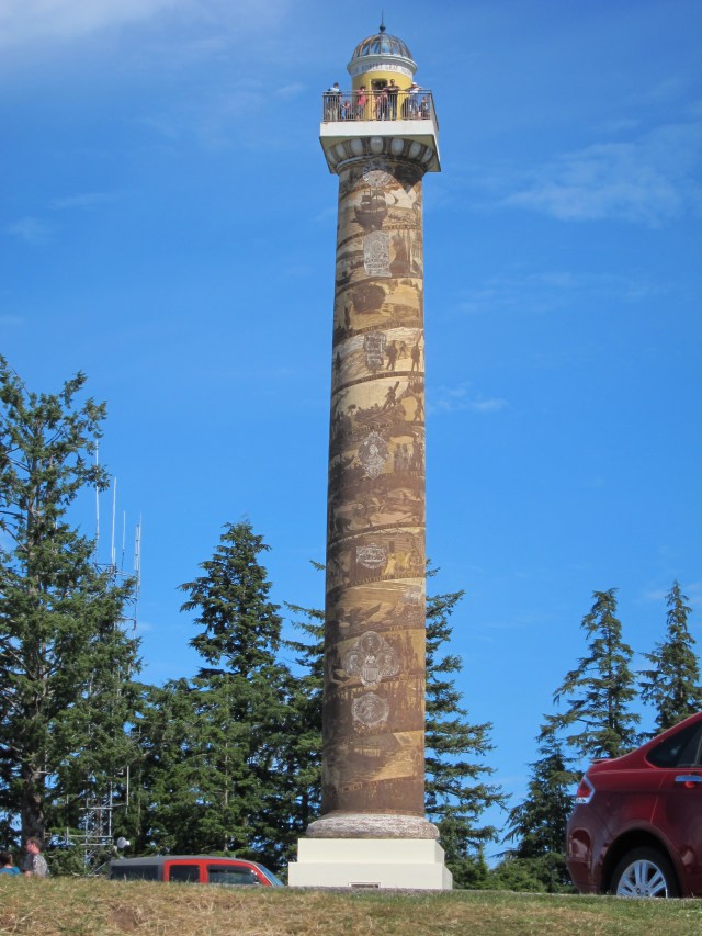 I crossed the bridge back to Astoria and rode towards the Astoria Column (or spiral). Here is a Wikipedia account of the column: