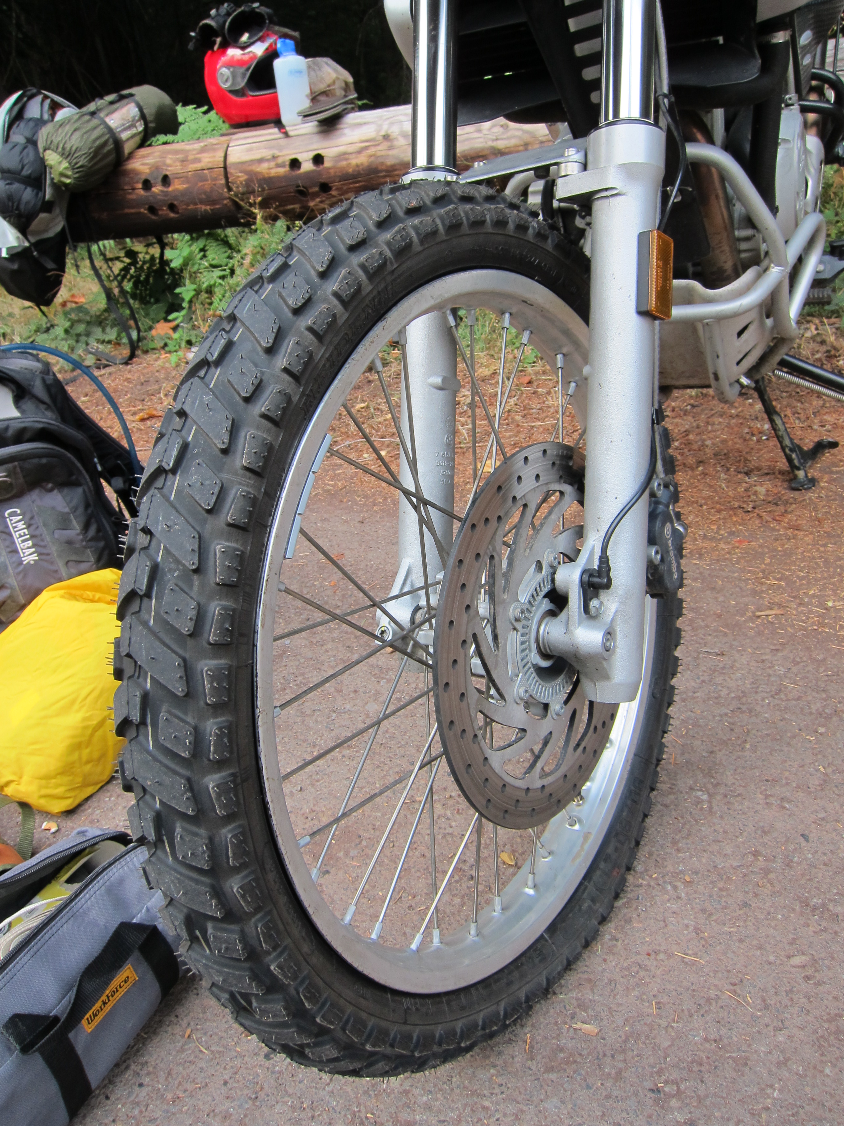 By the the time I got on the freeway I started to get on the zone. On all my trips, it takes a few miles on the road for the relaxation to set in, and then I’m on some sort of adventure mode. Worrisome thoughts disappear, the expectation of what comes after the next curve, or mountain, takes over. Everything becomes fluid. And the bike was running great, the temperature was comfortable, just slightly cold. I thought about adding a layer, but I knew that as soon as the sun was out it would warm up, so I did not bother. The bike had brand new Haidenau K60 tires, front and back. So I was taking it easy, running in the tires. As the time and miles passed, I was getting more and more in the zone. I was feeling absolutely fantastic, looking ahead for a great few days of riding! I could see myself arriving on the Page Springs campsite mid afternoon, my only concern was to find cold beer. I knew the guy on the campsite just next to Page Springs sold beer, but last year his refrigerator was not cooling them enough. But destine had a other plans. Warm beer preoccupations disappeared. Once I turned from 126 to Hwy 242, towards the fun Mckenzie pass road, I felt the front end of the bike was soft and dragging. I looked down and there it was: a flat front tire!