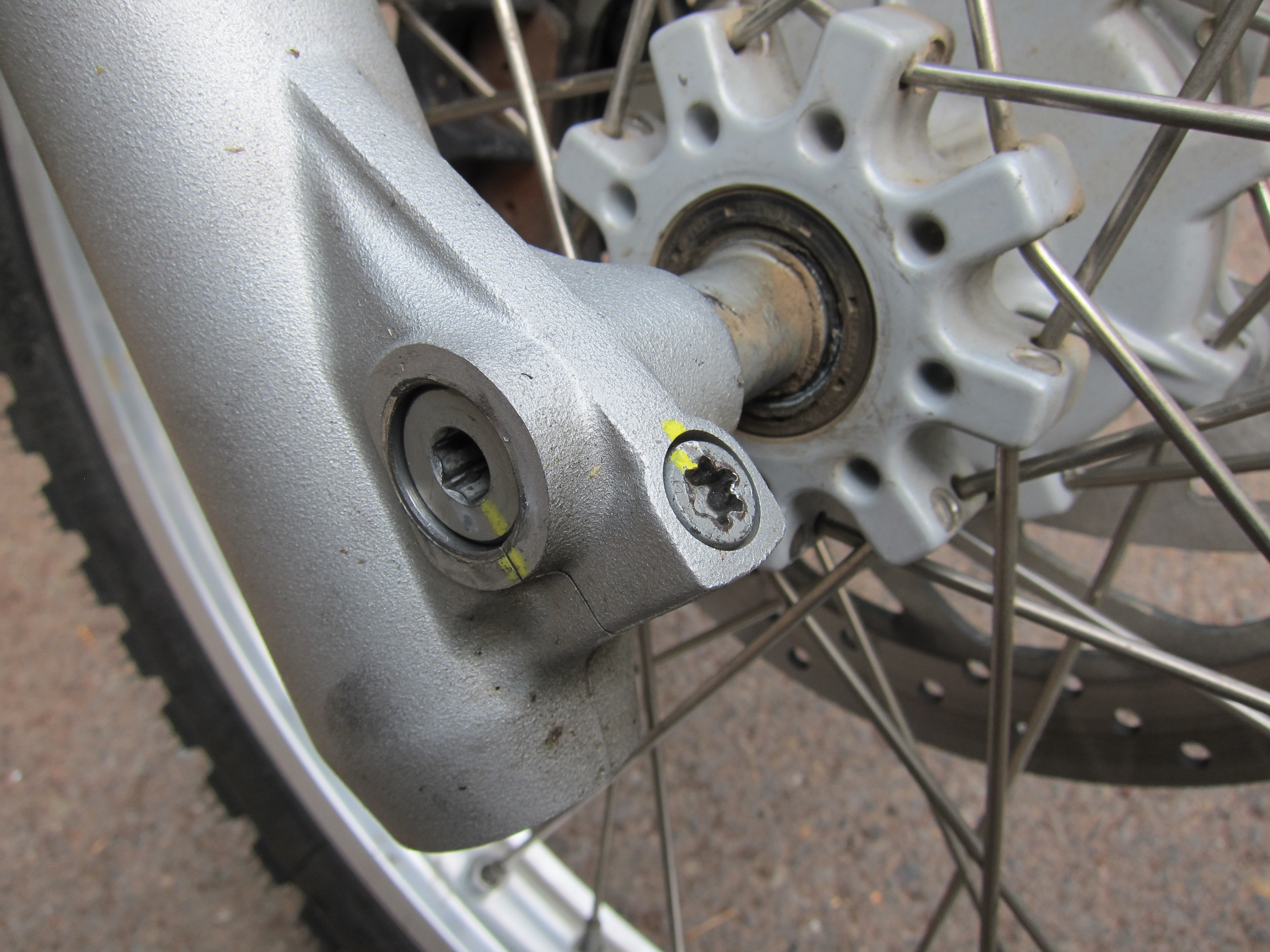 I parked the bike with the rear facing the log, got all my tools out, tied the rear down to the log so the front tire was up in the air (front tire was up in the air, not depicted on this picture). I could not see anything that could have created a puncture from the outside.