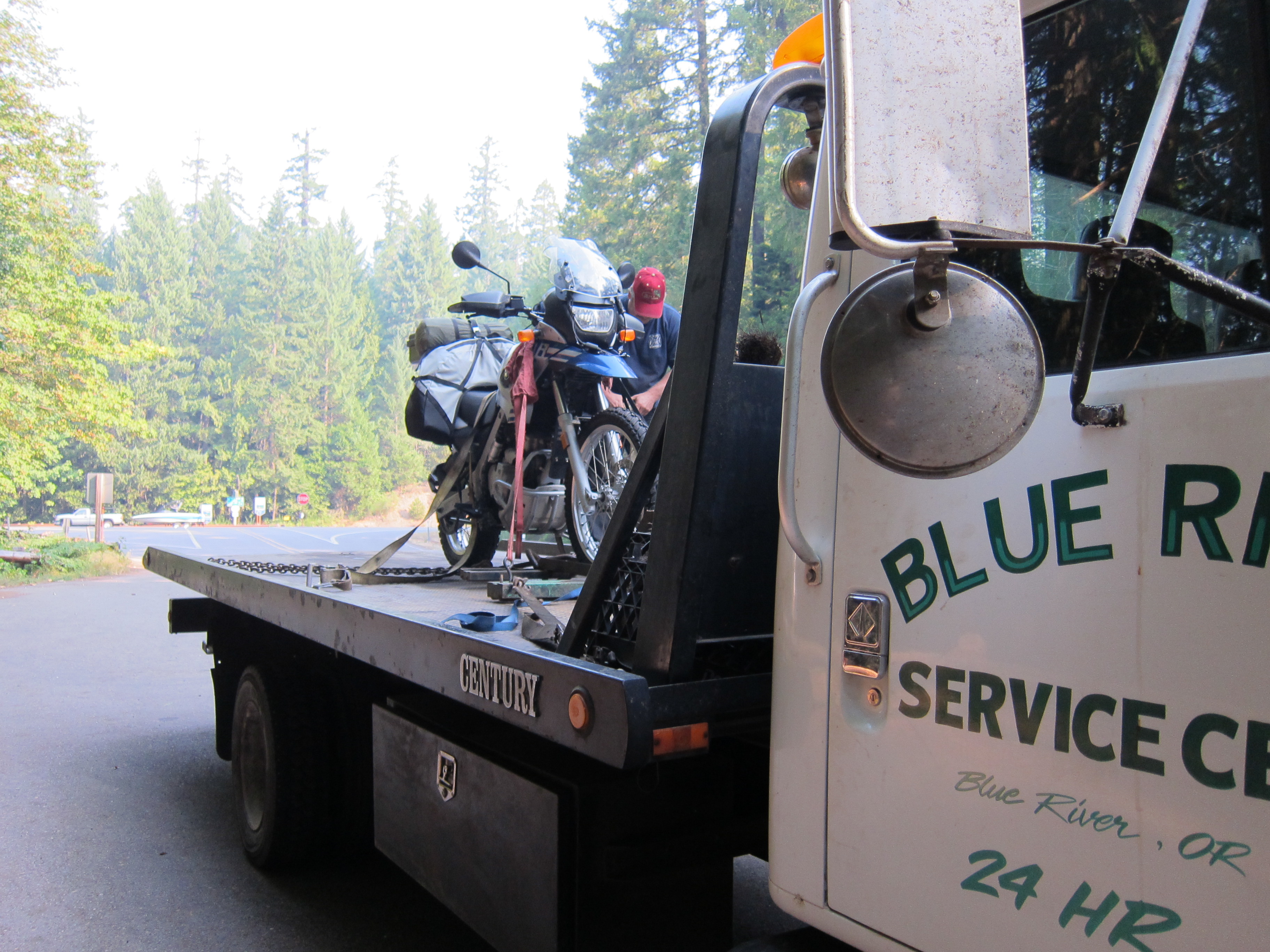 In less than 2 hours the bike was in the tow truck. By this time many motorcyclists were riding by and I was now on the fence about my decision. I could possibly change my decision, borrow tools and fix it. But I went home and used my time off to take care of other issues that had been lagging behind.