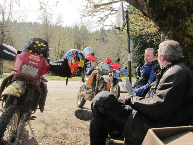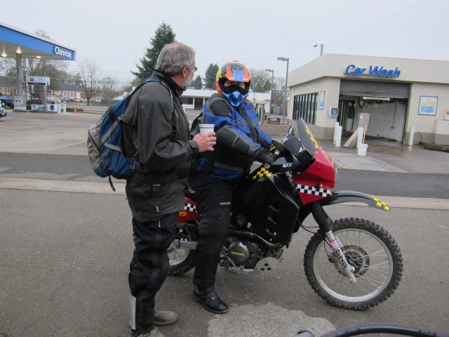 Doug had been talking to me about his recent rides with Riley. They already have a couple of rides on their belt this year. I had heard about Riley before, he is a local legend. Among the many aspects about Riley and his involvement with motorcycles, what I know first hand started when I arrived in Eugene and I met him as the chief mechanic at the local BMW dealer, where I bought my BMW Dakar in 2006. Then he retired from that job and now I hear he works almost exclusively as a consultant or mechanic for old school BMWs. Riley arrived in time to fill his bike’s tank and be ready to ride at 11:00am sharp.