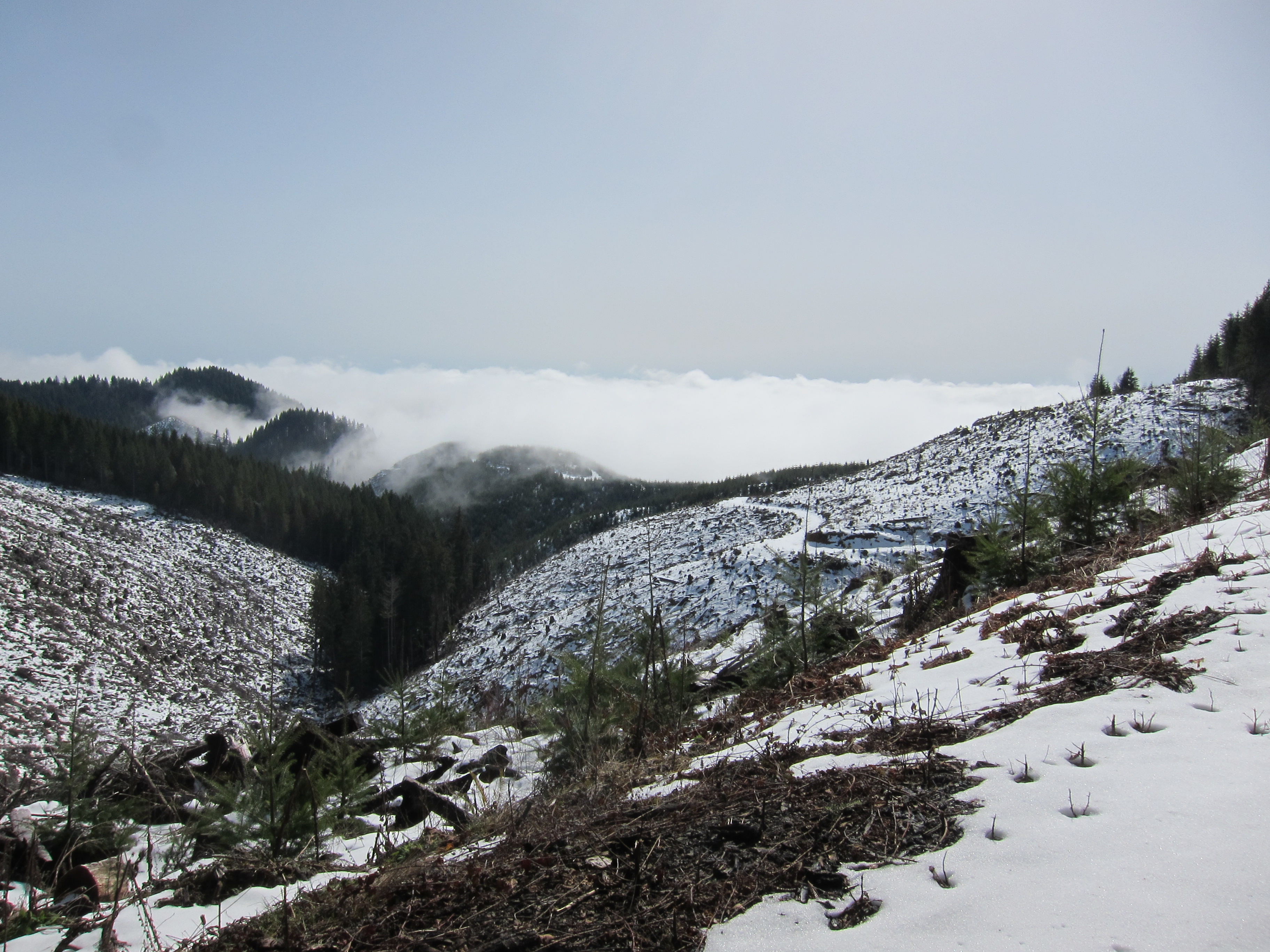 Dry weather on the forecast for the weekend and I get a call from Doug on Thursday asking whether I wanted to go riding. Riley suggests we go back to the High Pass area. He reports the snow is gone and he has found another route that gets us west of the closed gate on High Pass road. All I have to say is: Great! The ride was planned for Saturday. However, I wake up in the morning and first thing I see is my truck’s windshield with a layer of frost on it.
