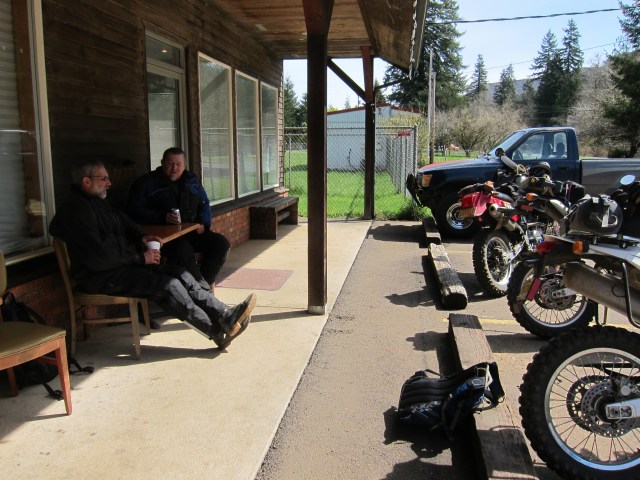 Doug arrives at 9:15 am as expected and comments on my dirty bike. Well, if I had the time that he has… I mentioned. But in reality, if I had the time probably my bike would still be the same, carrying mud from the previous ride, and the one before that. But I check fluids, and clean the chain. The important stuff is maintained well. So we met with Riley in Junction City and topped off the tanks.