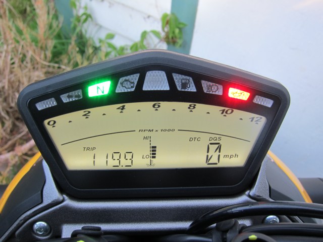 My impressions on these first 120 miles, limited by what can be done below 6,000 rpm are that this bike offers a very solid line on curves. As if it is on rails, inspiring much confidence. That was something Ducati wanted to provide with the chassis changes made and it accomplished this goal, it appears.