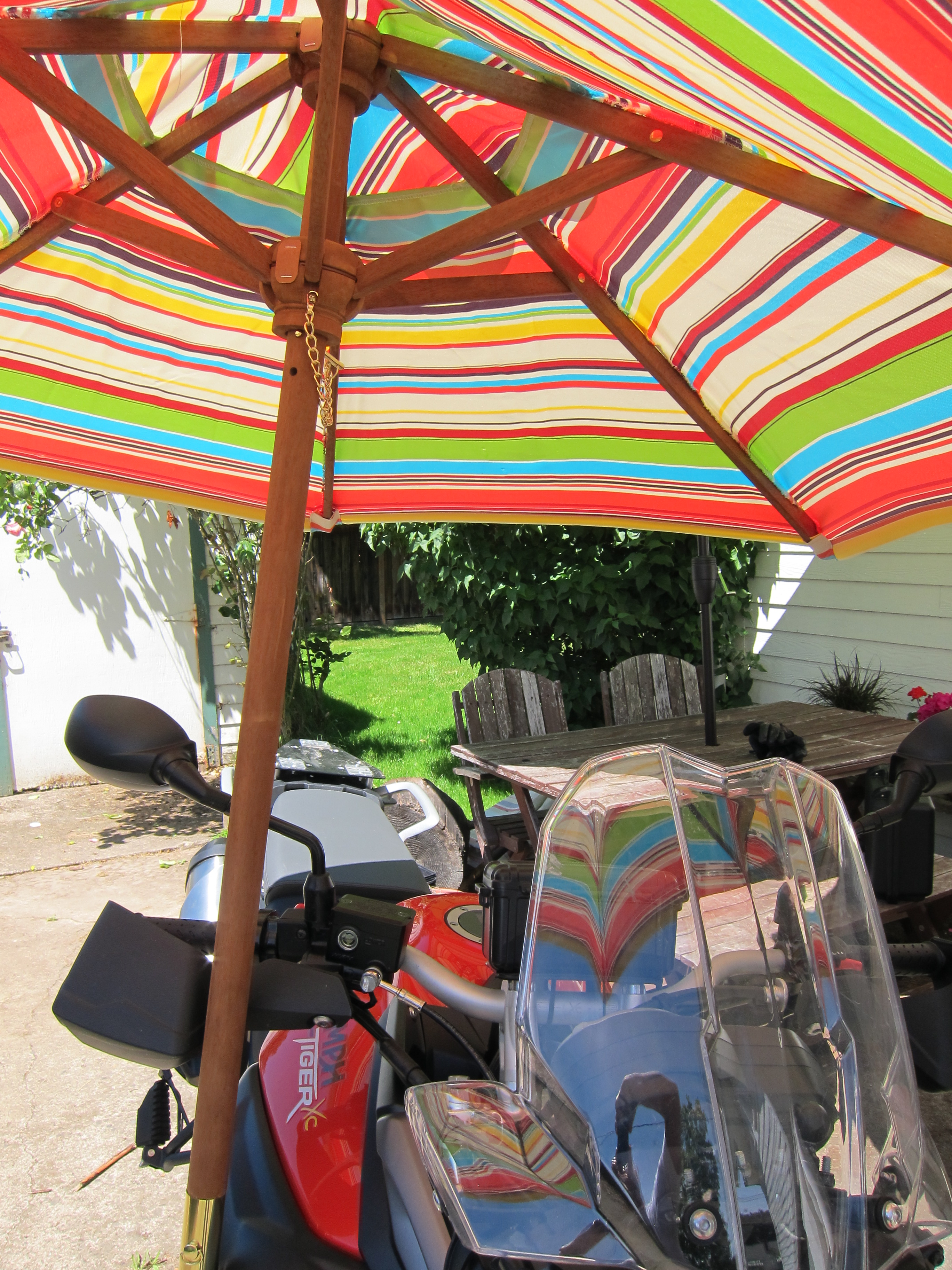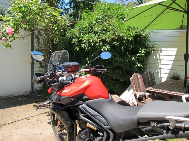 Actually, after almost 1,000 miles on the Ducati, when I climbed on the Tiger I felt the tank was really tall, the handle bars were tall, the dash-board was a mile away, I was seating in the bike, not on the bike… which is a normal adjustment of perspectives when switching from one bike to another. The Tiger is a very comfortable bike, extremely smooth. And it has averaged 50 mpg this weekend.