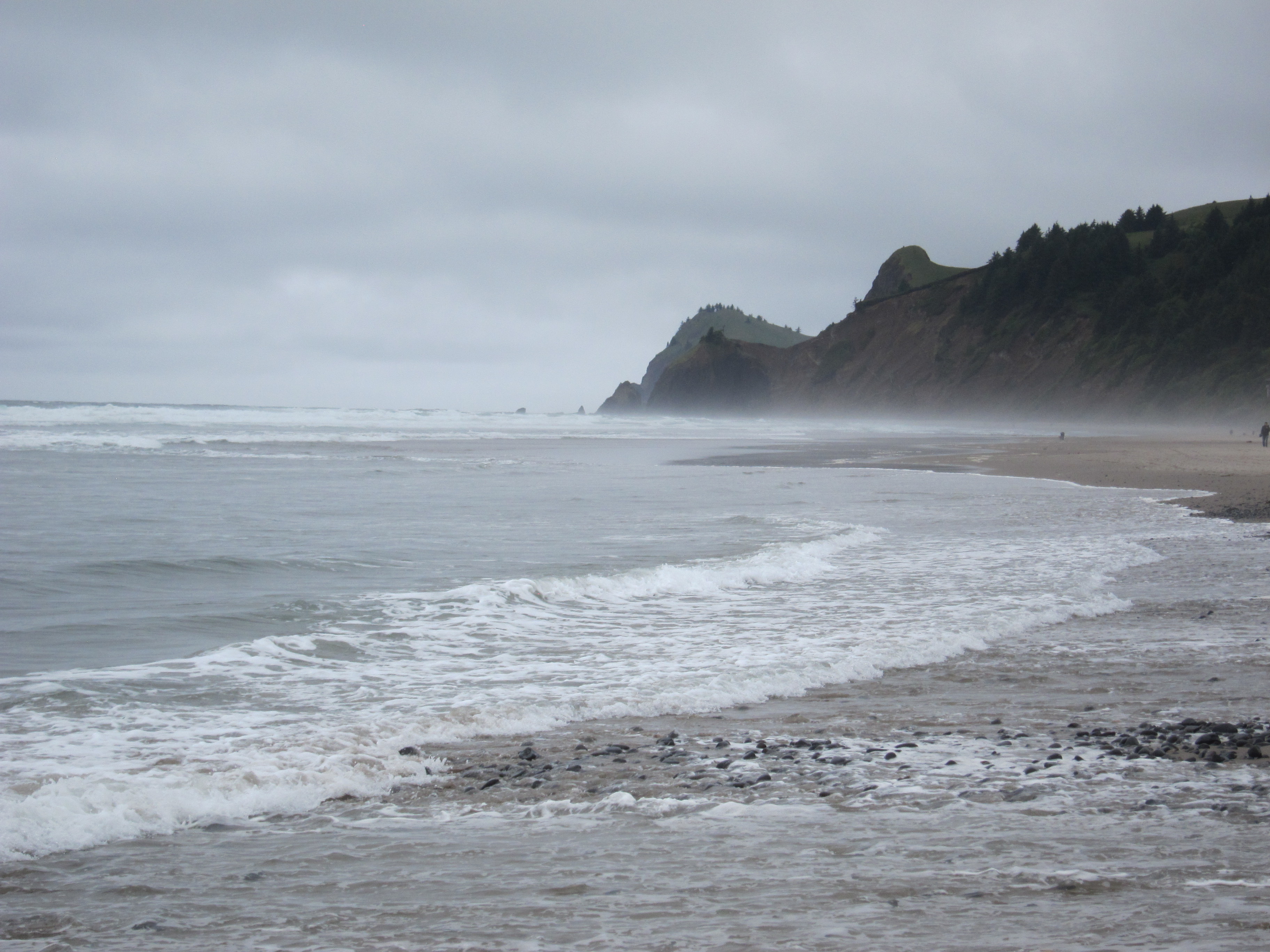 In Eugene we had clear sunny skies, and soon it was getting hot enough that I used an umbrella to do the pre-ride check, for loading the bike and setting up the bike in the shade. But as soon as I got to the coast it was a completely different story, I was met with cloudy skies and some fog. And it was colder too, much colder as well.