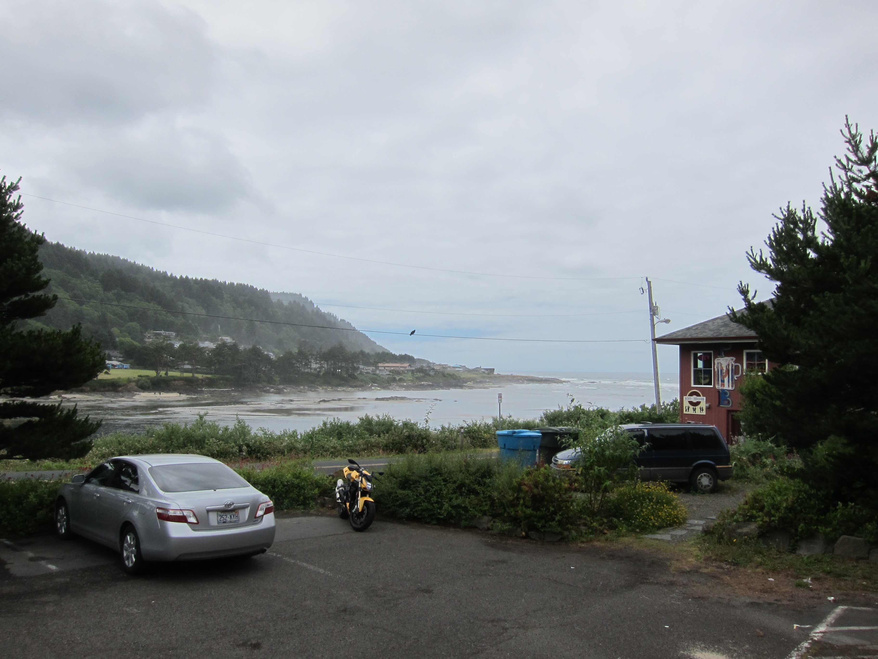 We talked while there and we decided to go for a ride “one of these days”. Eventually we connected in one of our soccer matches and the “one of these days” became July 15th.  We started without much of a plan, and in the end we rode one of the variations of my Pacific Loop, but in the clockwise direction. Although the winds seem more favorable going north on the coast, I like better the south route, as it is easier to stop and enjoy the views if I decide so.  Besides stopping for gas, and for deciding which way to go, we only really stopped when we got hungry and decided to have a lunch break in Yachats. This was my first time in this restaurant, the Ona Restaurant.