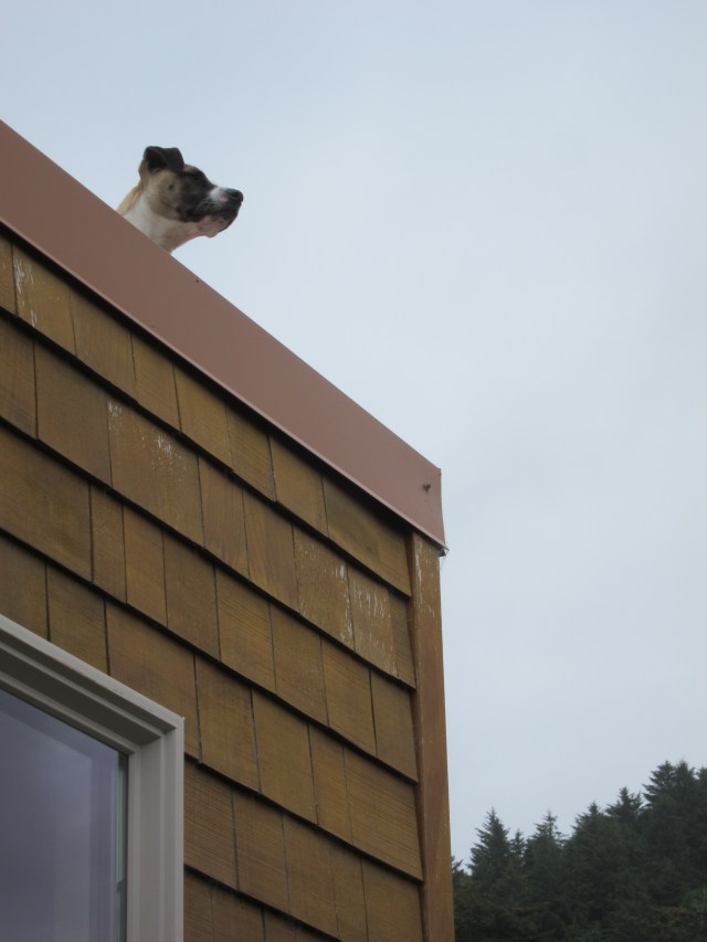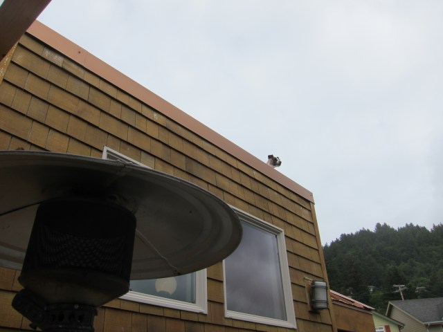 I’ve been once to the restaurant on the red building (on the right on the photo above) before. It is cozy but it is a much smaller operation and at lunch time staff may get overwhelmed if too many customers show up. It is actually more like a bar. The Ona Restaurant is a better structured restaurant and offers a more varied menu. The food was excellent and I will definitely go back there. As we were seating outside, we heard people talking about a dog on the roof, and looking up and pointing to the roof. I had to see what that was all about – yes, there was a dog on the roof.