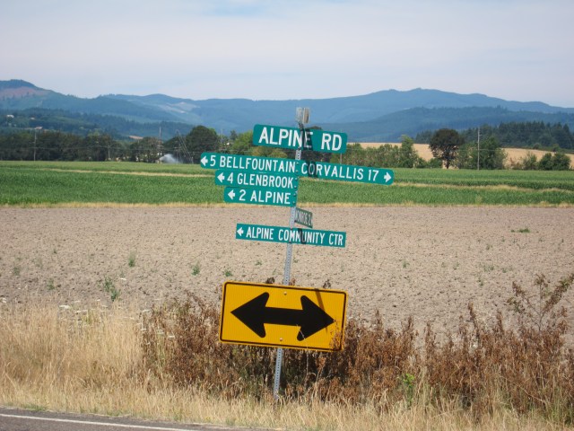 I am starting to recognize some of your roads near Corvallis. That Hay field, I was very close to it. I may even have ridden past there and I took photos before the hay was harvested. I took Hwy 34 but just before Philomath I headed south to Bellfountain near Alpine, then East to Hwy 99, then North to the Team Oregon Headquarters. I notice from my map I could have just gone east from Alsea but I don’t know the area.