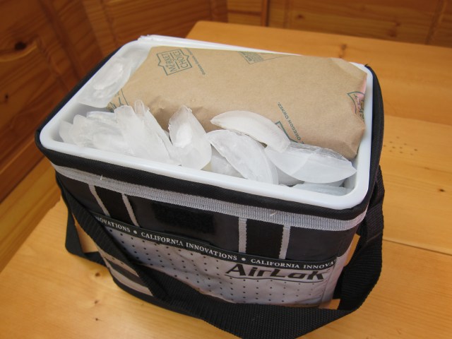 Beer and dinner, the important stuff all packed in my small cooler that fits in the central pocket of my Giant-Loop bag.