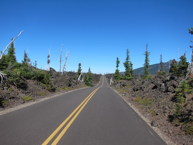 To get to the Metolius River I already chose a longer route via the McKenzie Pass. Now, end of the summer, let’s check the snow cover on the Sisters’ Mountains as viewed from the McKenzie Pass.