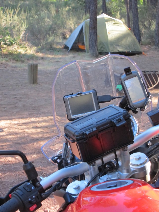 When everyone went to sleep, we, the three amigos, had our time for ourselves. We sat by the fire and had our conversation. Then I went to my tent for a good night of sleep. The temperature may have fallen to close to freezing at some point. It started well and I was comfortable and had a good sleep at first. But then I felt the cold. I spent a good portion of the early morning convincing myself that it would be all right; that it was better to stay like that than to disrupt the sleepy state I was in to find the clothes that would make me warm. This is not the first time it has happened where I find myself cold and not able to make the effort to get warm. Eventually I fell asleep again. The morning was still cold and until the sun made its way to the camp site we were all huddled around the campfire with a hot cup of coffee to warm our hands. And I had my motorcycle gloves somewhere… After breakfast, tent is packed, bike is ready for what is next.