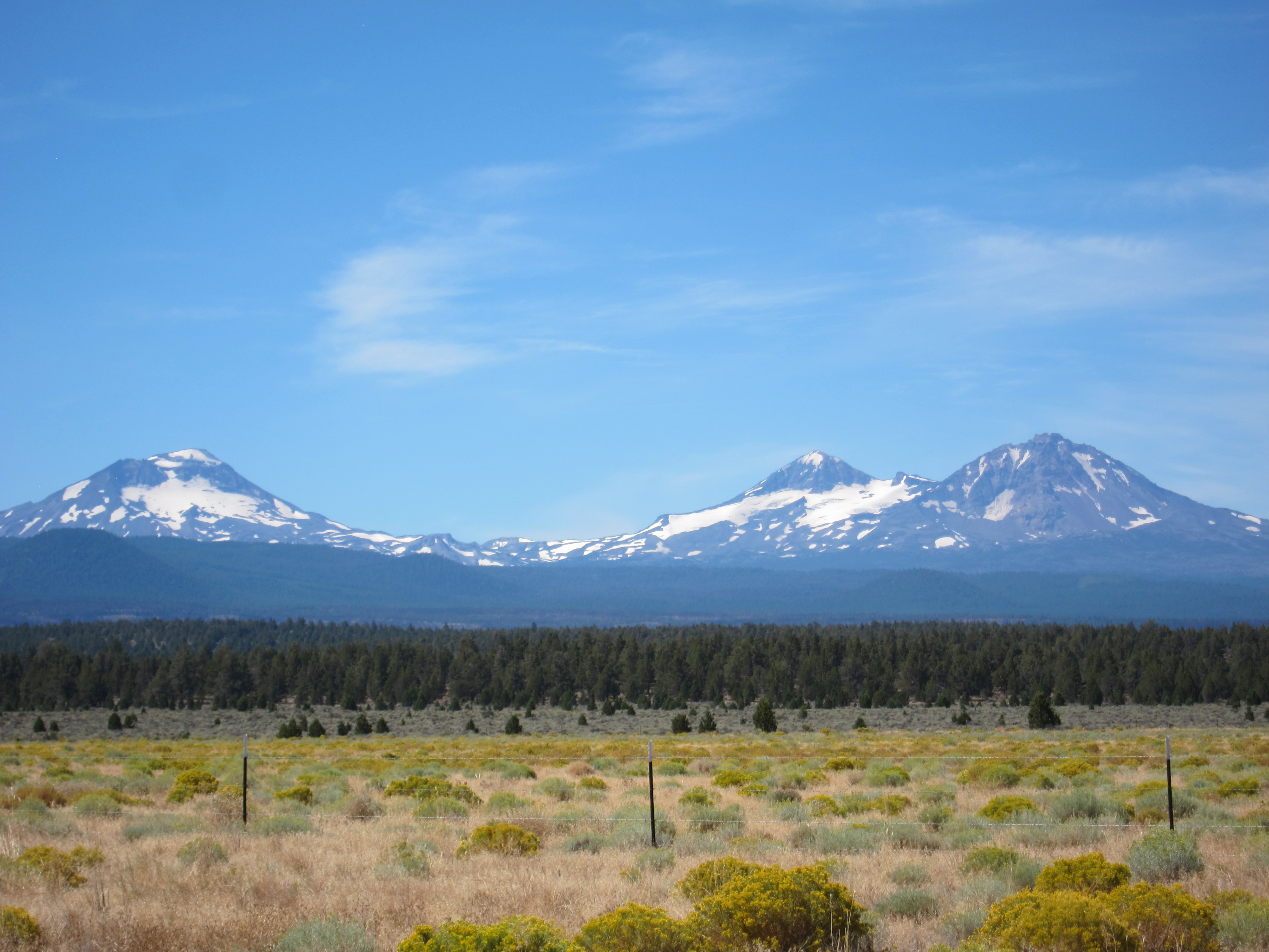I left Sisters towards Bend and stopped to appreciate the view of the Three Sisters mountains from this other angle, where you can see the three of them. I have three sisters and I see it that they are taking care of me when I go by this region.