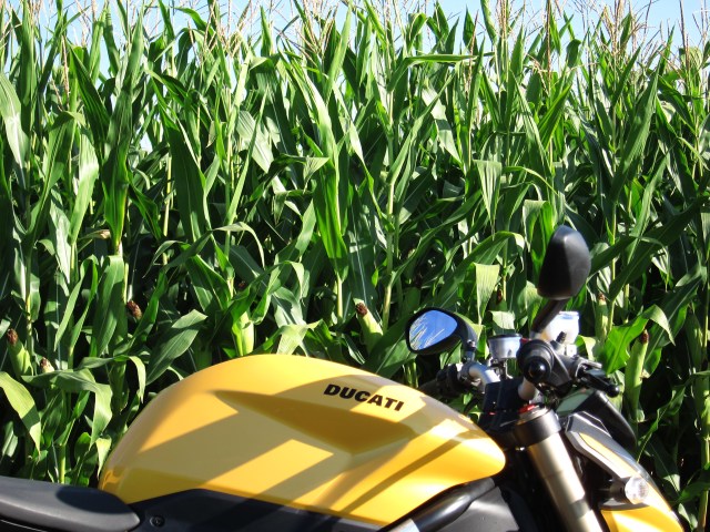 I responded that if the weather was good I would be there. And Sunday came and the day was just beautiful. A perfect riding day, not too hot, not too cold, with temperatures below 60 degrees in the morning and never past 75 i the afternoon. I took my customary pacific loop route, the no-thrills version, no detours added to it, just stops for pictures along the way, of course. First stop, let’s check the corn.