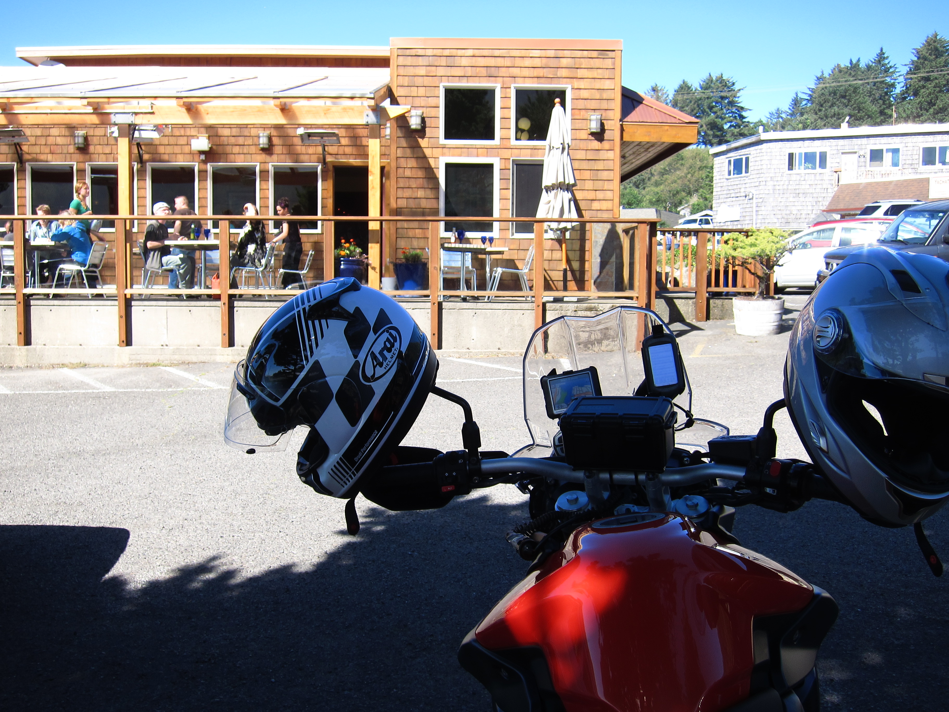 Still, we decided to go for a trial run first, we rode the 13 miles to Junction City to see how things worked. I checked with Lisa and she said all was good. The first couple of miles I was extra careful and by the time we got to the gas station in Junction City things were looking good. Except whenever we stopped. This bike is tall and I don’t flat foot it. At one point I almost had to make another entry on my book of stupendous embarrassments. And I have quite a long list of those, mind you, but that is another story. What happened is that at some point we were stopped, getting ready to merge on Hwy 101 after one of our stops, and all of a sudden the bike was tipping to the right and it went very, but very close to the point of no return. I channeled all my soccer playing strength to keep my right leg firm on the ground and with the upper body and arms, and a grunt like that of a heavy weight lifter on his final attempt for a gold medal, I pulled the handle bars back up. What a relief. After that I was over careful when stopping this beast. When in motion, however, this bike was surprisingly good with a passenger, which probably was helped by Lisa being a rider herself, and a great passenger. But I’m getting ahead of myself here.