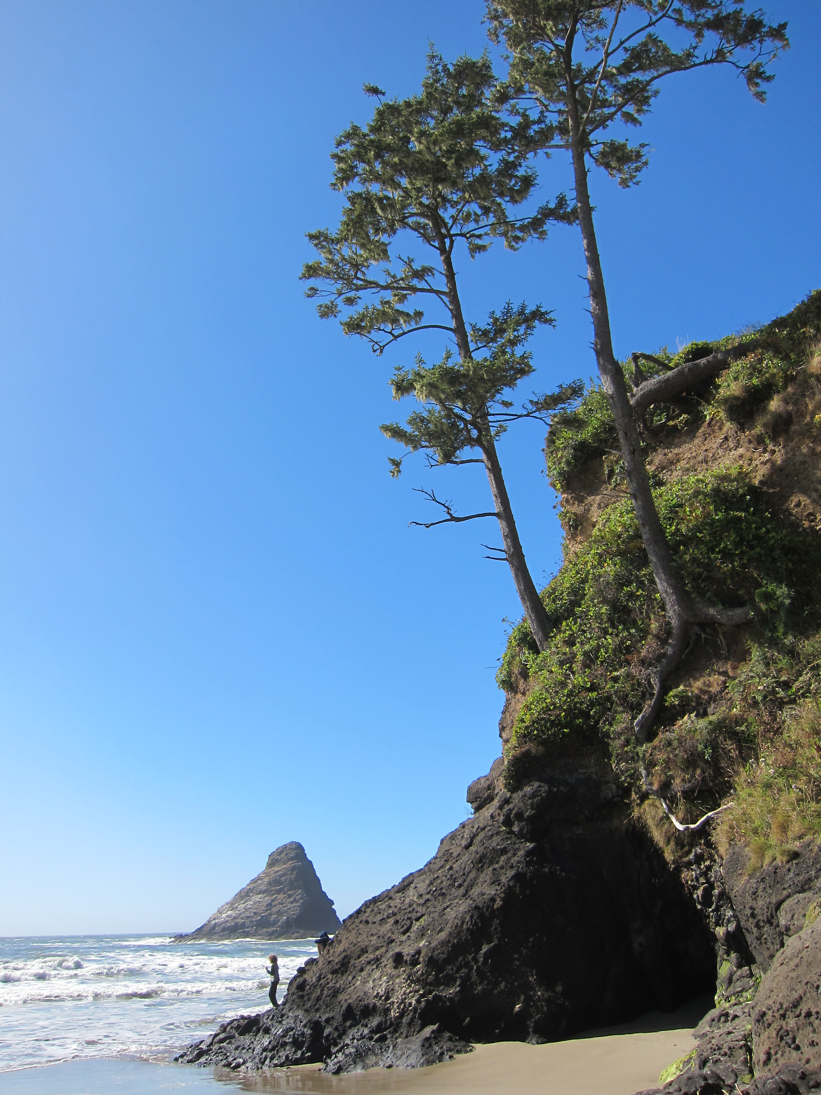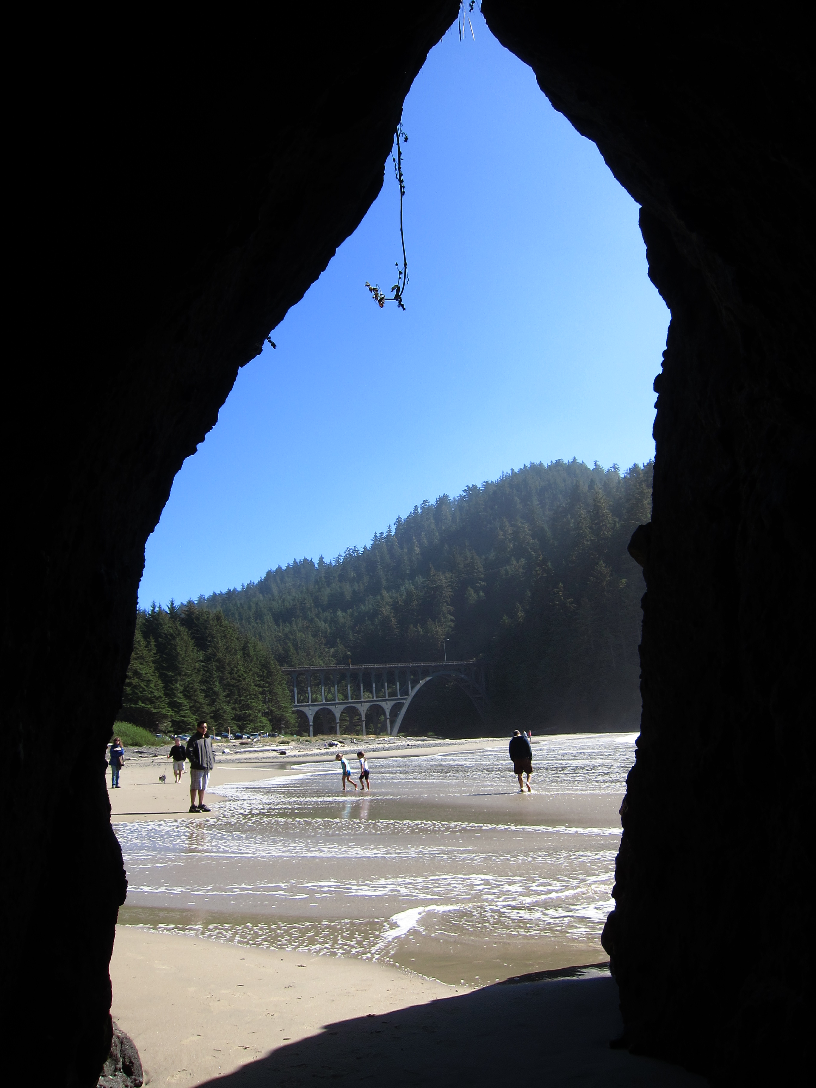 We checked a cave close to the water line. You can see another Hwy 101 bridge from the cave. On some of my posts from last year I talk about these bridges. They are historical for their Art Deco design but also because the were built during a span of time that made them strategic as part of the Post WWI recovery in Oregon, the Roosevelt Military Highway (which became Hwy 101), and later the recovery act from the 1930’s depression. And now they are a known touristic attraction along Hwy 101 on the Oregon Coast. For more information on Oregon’s Highway 101 bridges, go here.