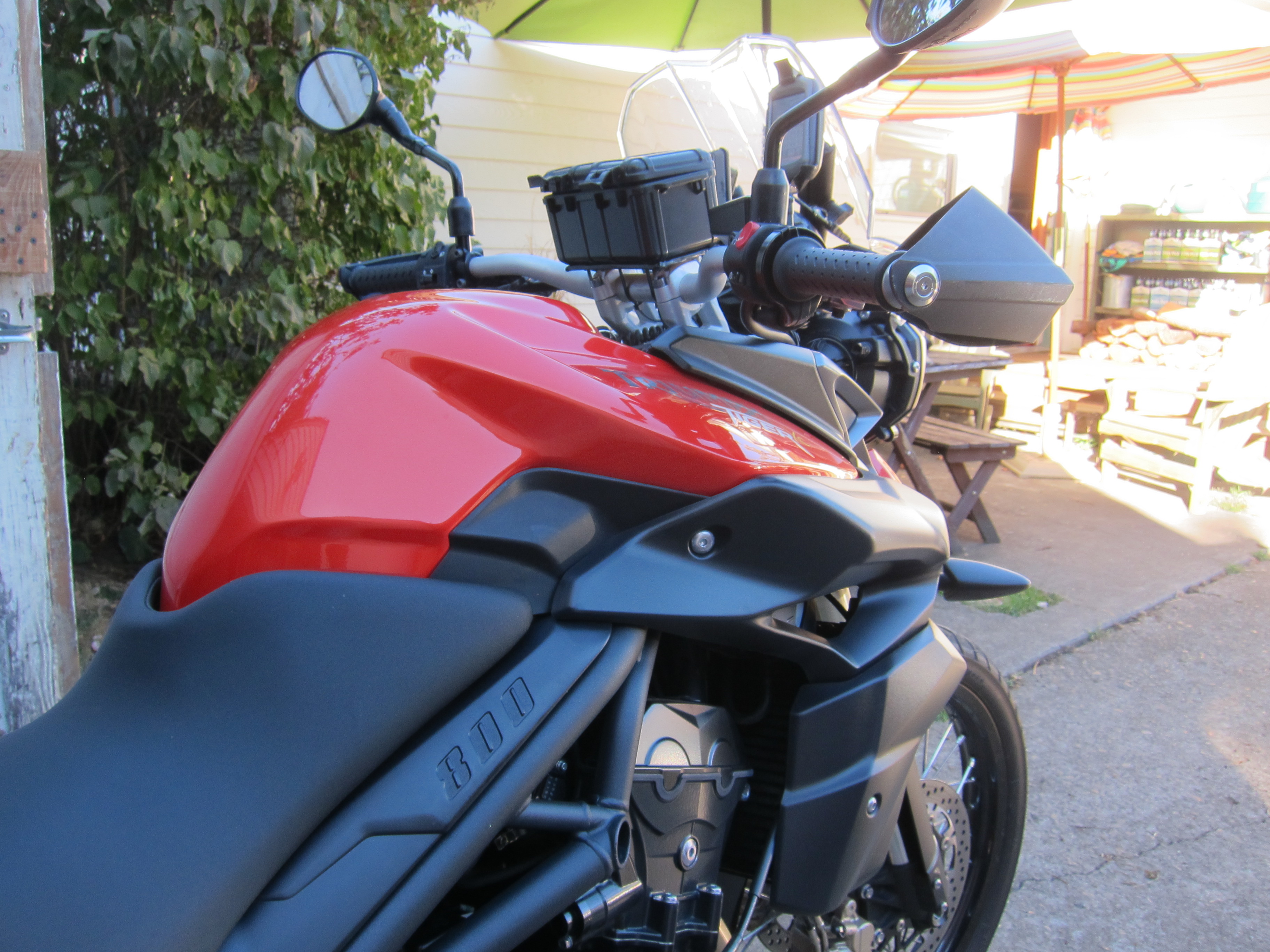 Today I was going to ride with Lisa, another local rider. When she arrived and upon checking her motorcycle’s tires we realized maybe it was not such a good idea to take her bike on a 200 mile journey. The tires look good still, but not quite. So why not try the Tiger 2-up? I’ve traveled with a passenger on my XL 250 many times. Those were good times, when I barely had money for gas, the bike was small, but everything seemed then as nice as today. And I also traveled with a passenger on my Dakar with the 650 cc single cylinder motor which has exactly half the horse power of the Tiger. The Tiger is very likely to handle it well. And on this Triumph you have the luxury and safety of adjusting rear suspension pre-load and damping.