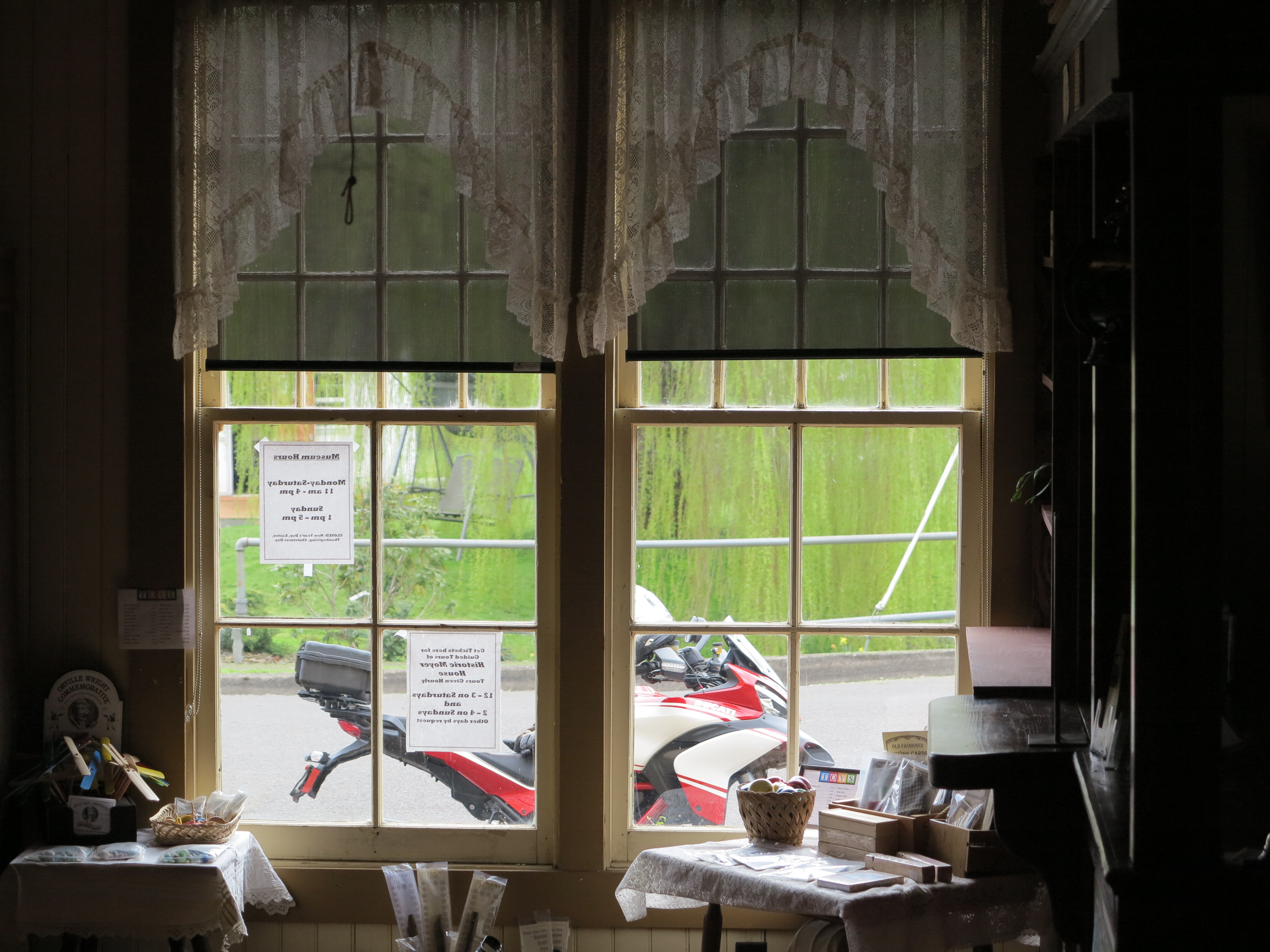 I parked the bike in front of the museum and took my time getting my helmet out, putting my gloves in the box, taking pictures. When I get inside the two ladies working there were admiring my bike. The older one made a comment about it, saying she had seen advertisements about this bike. I don’t watch TV, so I don’t know where else this bike may have been advertized outside of motorcycle magazines. I was a bit unsure she really knew what this bike was. But this lady turns out to be quite a connoisseur of vehicles and mechanical things. Her husband (or was it her father?) used to work on Studebaker cars. And it so happen this museum has the grandaddy of all Studebakers, in the form of a Studebaker Wagon, a real wagon that has made the cross of the mid-plains and the Rockies from Independence (Missouri river) to Oregon, arriving in the Willamette valley in the fall of 1865.