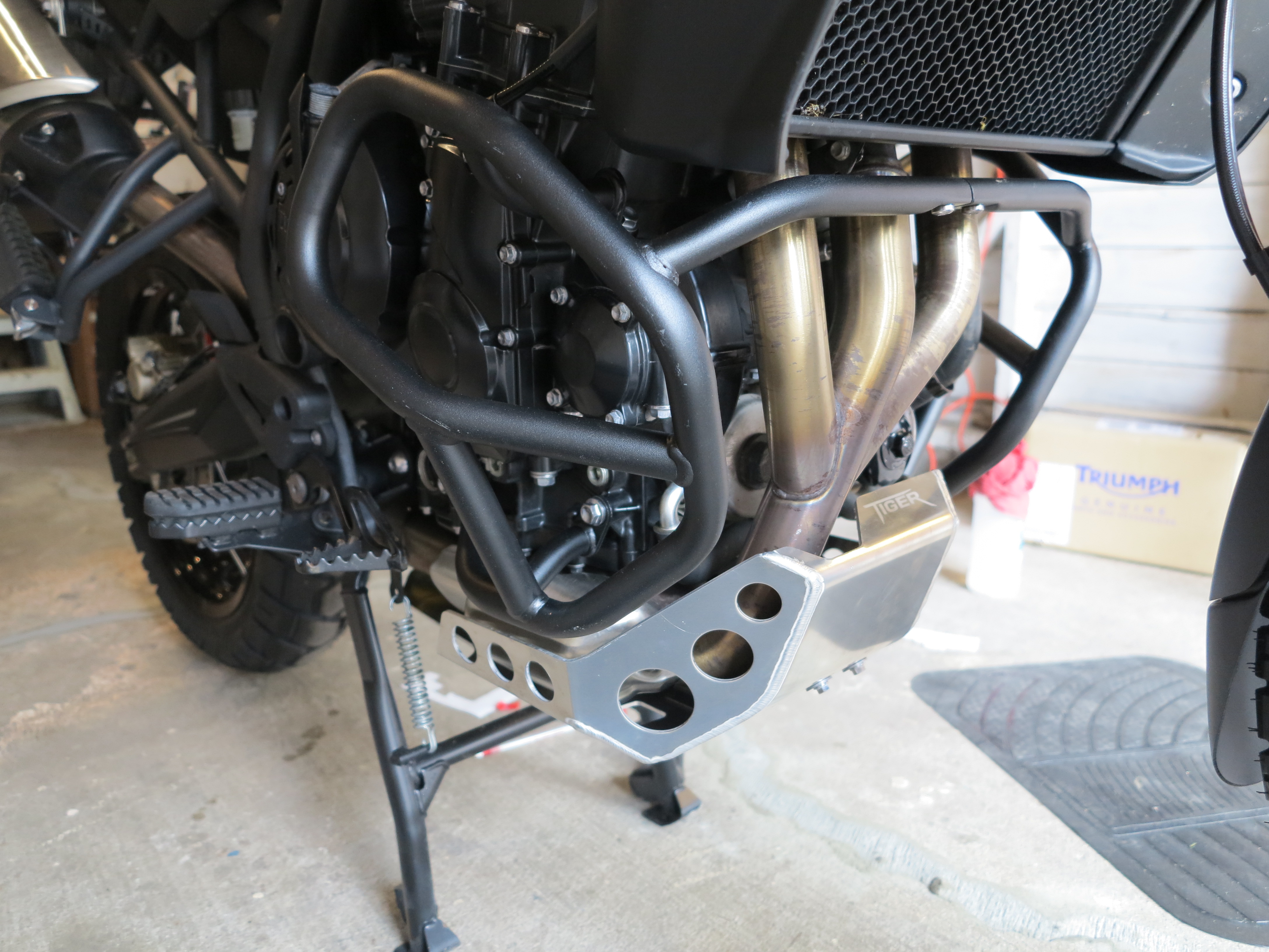 KernelBob. I too equipped my 800XC similar to yours. The problem with Triumphs skid plate is that any large impact on the front of the plate will push it into the header. I found this out the hard way, and the header is not cheap. It is the cutout on the front that will cause the damage. The rubber mounts shear and allow the gorse to push the plate backwards. Just an FYI you may want to protect the header too.