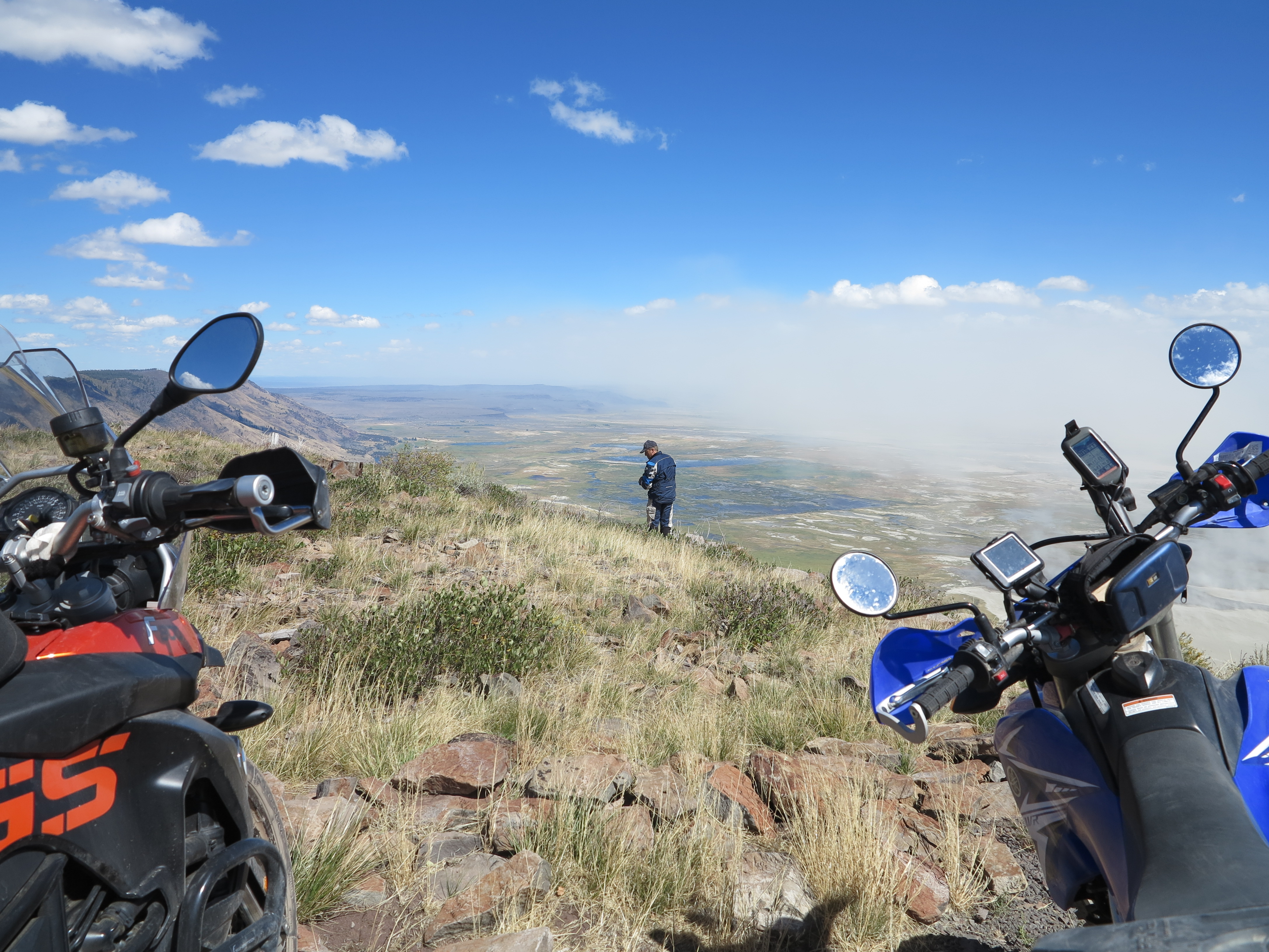 We split our ways here. Doug and Annie went their way. Chris and I found our way back north.  We would be riding together for a while, then I was going home and back to work, Chris would continue riding for a couple more days before returning to Eugene, timing to arrive in Eugene just before his brother arrived from Switzerland to reclaim the bike  (the F800GS belongs to Oliver, Chris’ brother).  We decided to ride the dirt roads on the range of mountains, called Winter Ridge, that parallels Hwy 31st, south to north, alongside the length of Summer Lake.  The ridge starts just north of Paisley, climbs steeply from there. Very quickly we already had a panoramic view of this small town.