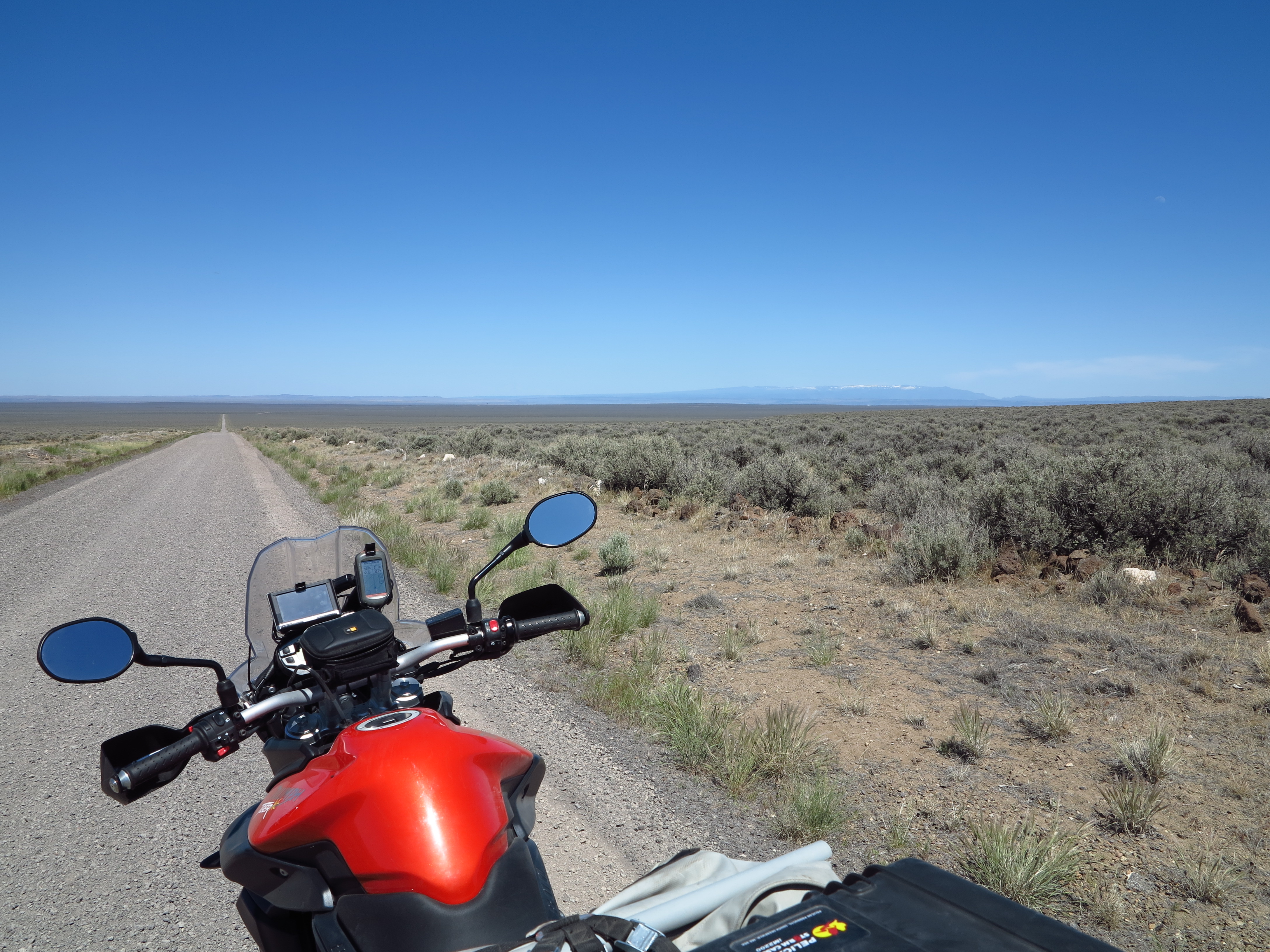 We had made a good time to Paisley, we were on schedule, but now is where the challenges start.  My fears and apprehensions were quickly dismissed, however. As soon as I hit gravel and dirt, even with the loaded bike, I could see the bike felt composed, no worries at all. I did not turn ABS off, by the way. The ideal set up would be to turn ABS off only for the rear brake. But this is not a capability this bike offers. More sophisticated systems on newer bikes such as the KTM 1190 Adventure, the water-cooled BMW R1200GS, or even my Ducati, have ABS systems designed for off pavement riding.