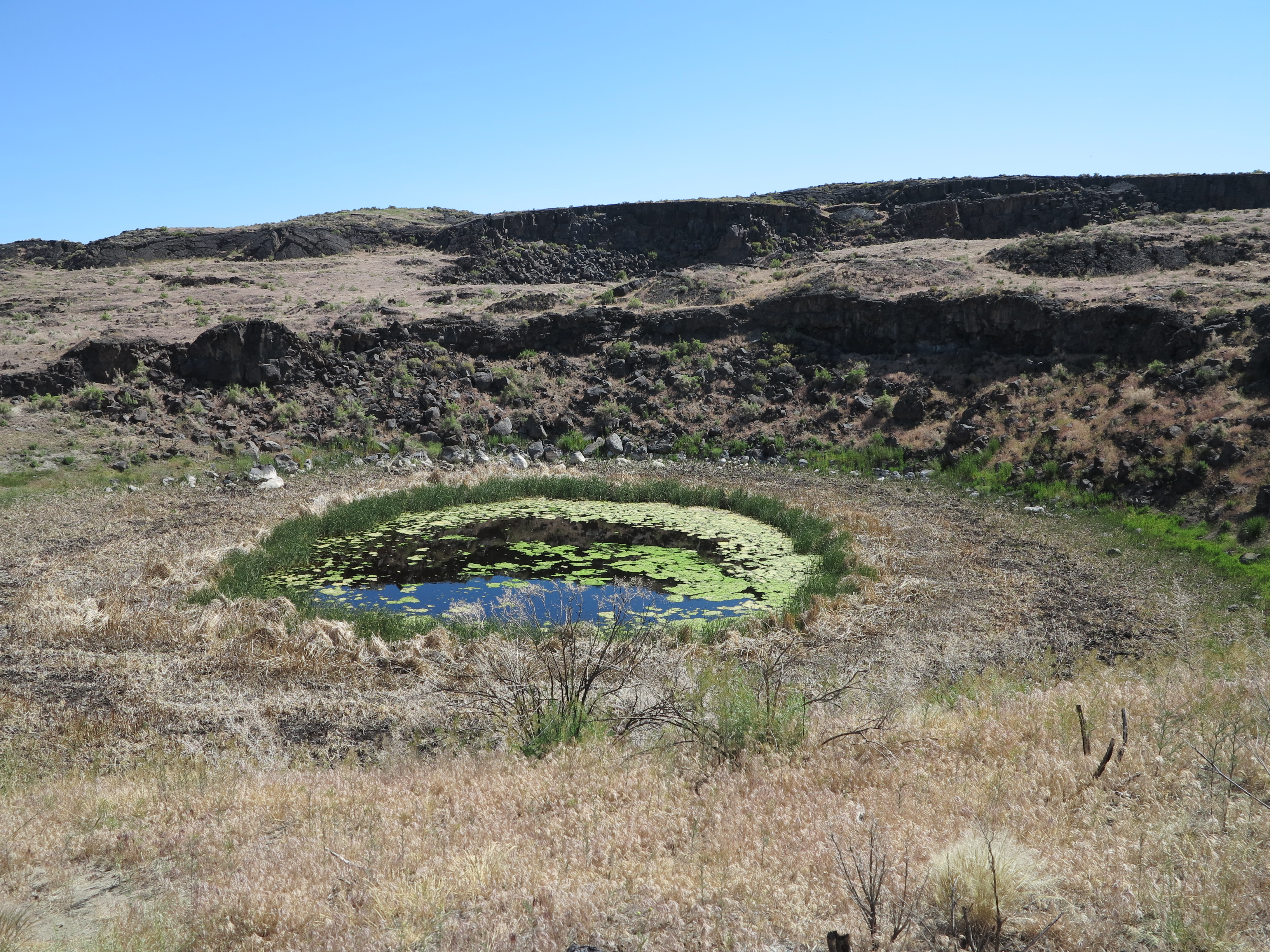 It was built in about 1,880 by Peter French, the boss of the “P” Ranch on the Donner and Blitzen Valley. They used this barn for breaking and exercising horses in the winter. It was quite the investment during those days, bringing the rocks for the inside wall and the wood, but then again, when all operations depended on the horse, that was the way to go.