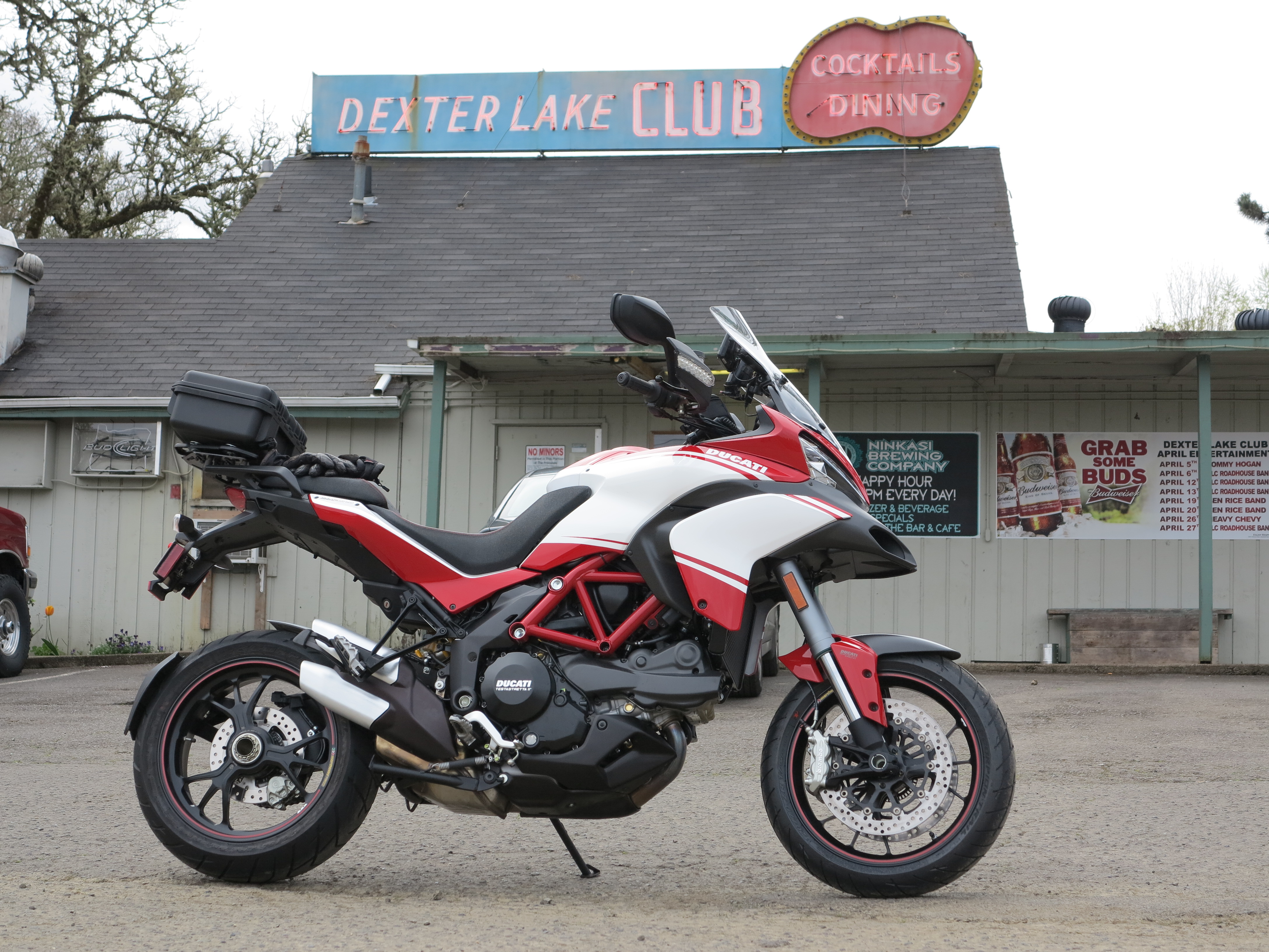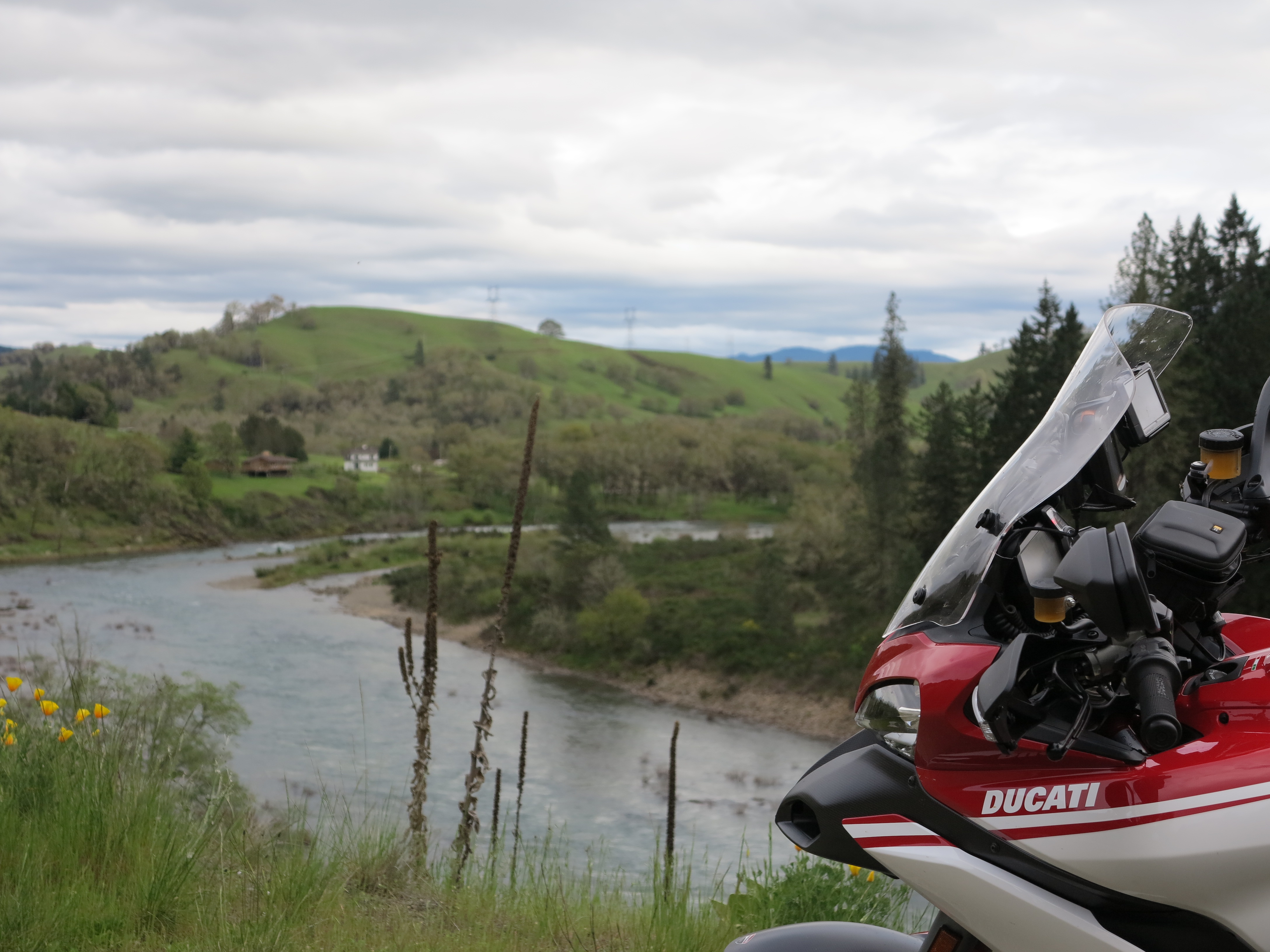 I did not become a pilot but eventually I did fly a plane for a short while here at the Columbia Gorge, with a friend who was building hours to get her instructor’s license. Based on that experience I told Doug I like better the motorcycle riding experience, the flying close to the ground feeling I get when riding. The reactions to commands are faster and precise, I get a better feel for the speed, it seems I’m going faster in the motorcycle than I was in the plane. The motor sounds and the vibration experience are better in the motorcycle. It is interesting that I like flying, but if I have the chose between flying or riding, riding wins by a great margin. But it was connecting these two passions, airplanes and riding, that leads me to this post of my trip to visit the Evergreen Aviation Museum in McMinnville, Oregon, on May 5th, 2013. The main goal was to check the Spruce Goose, a remarkable airplane, one of the milestones in the history of aviation despite being flown only once and for only a short mile, barely off the ground (water, actually) at a 70ft maximum altitude. The bike of choice for this excursion was the Multistrada.