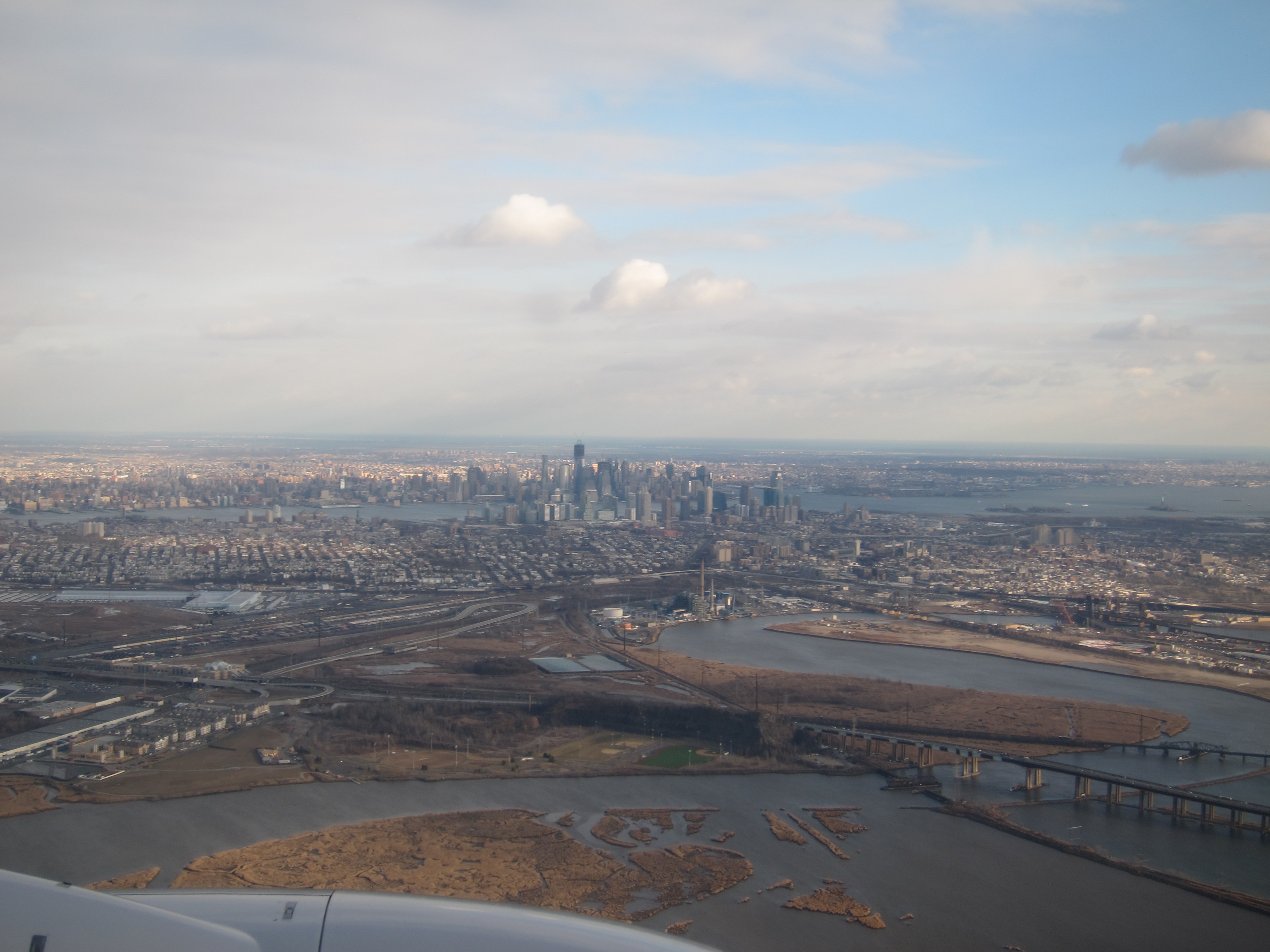 The growing new tower in the Manhattan skiline. Landing in Newark, NJ, February 12th, 2012