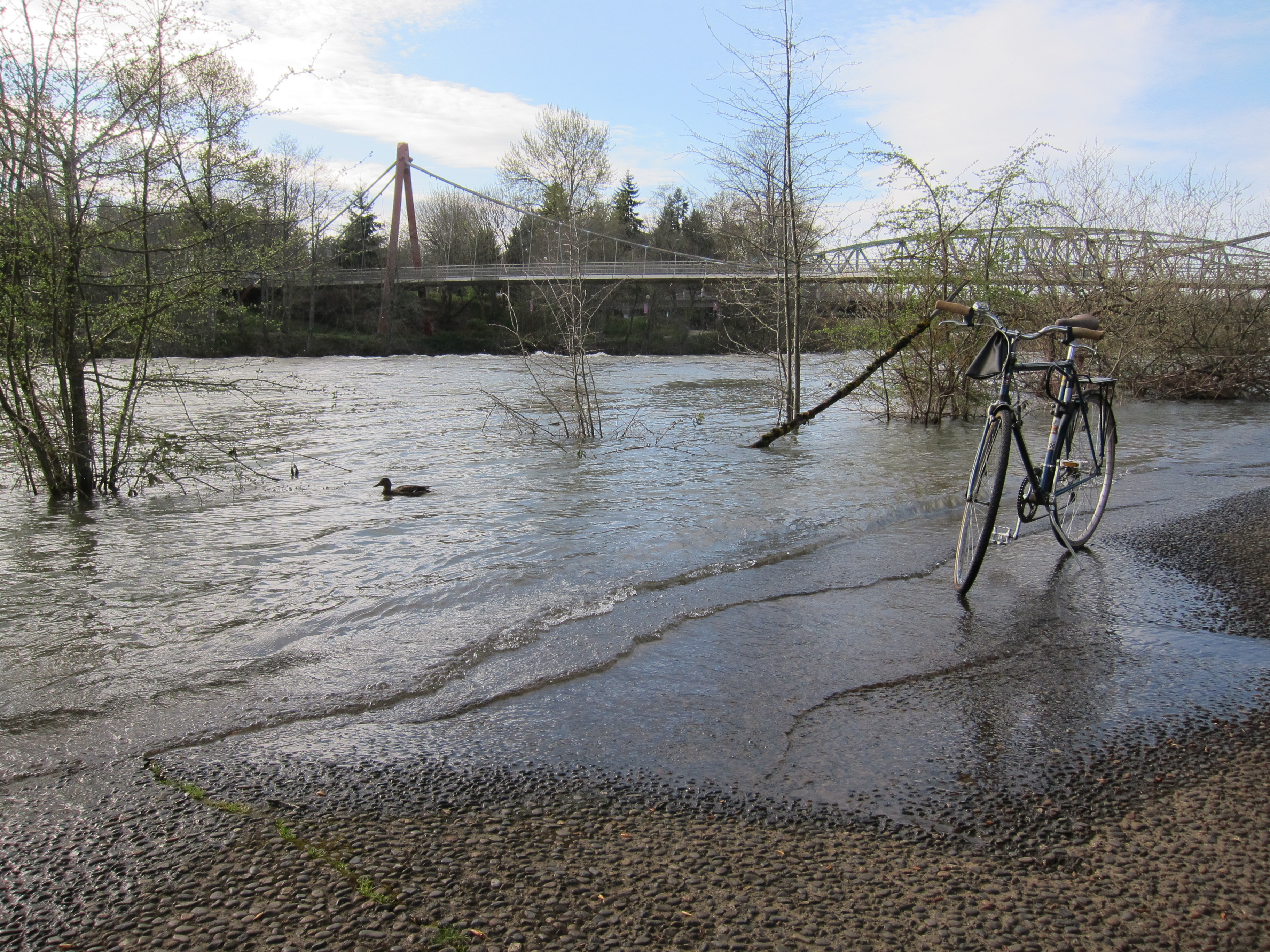 The Willamette river floods the bike path. April 2, 2012